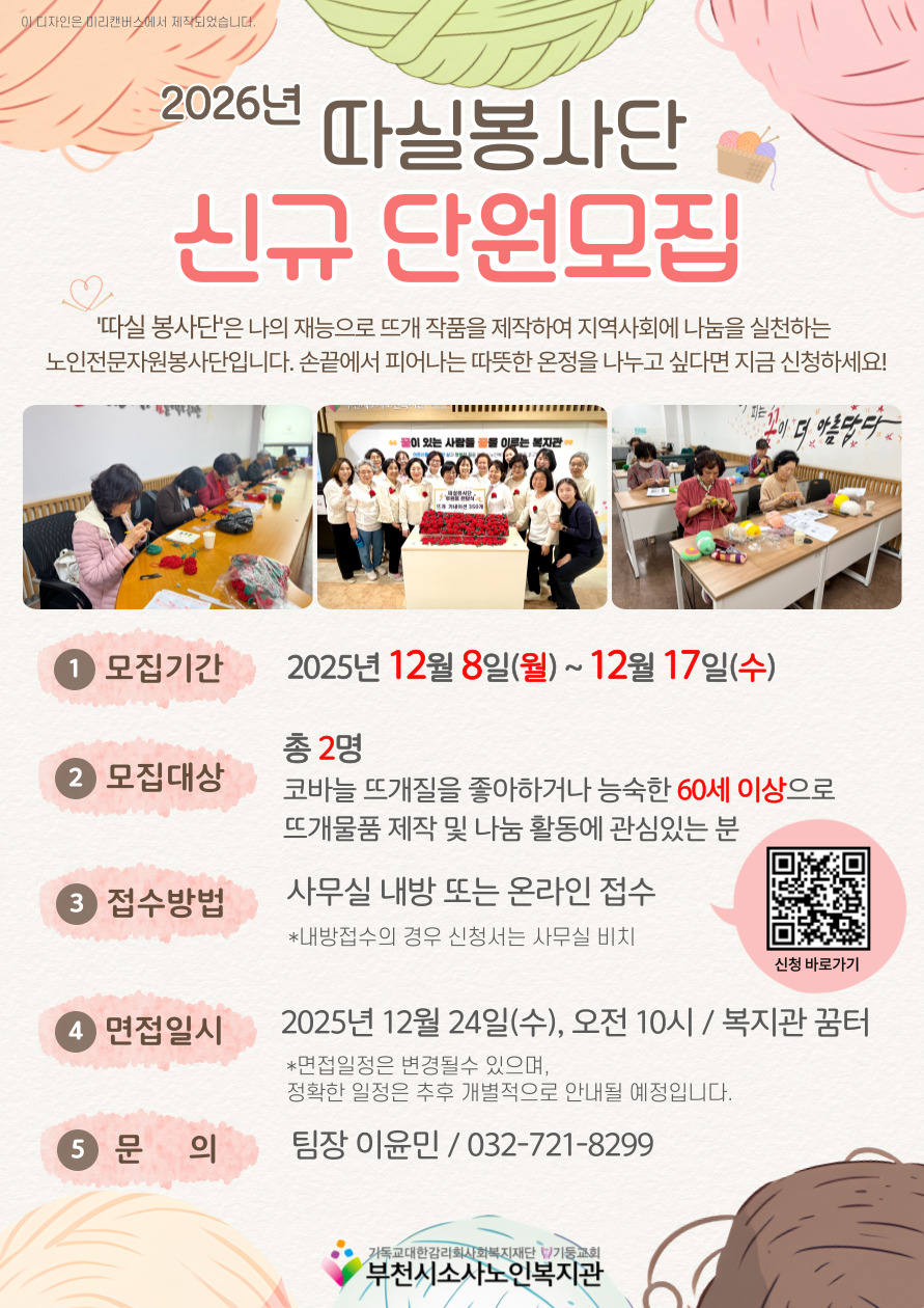 2026년에도 함께 뜨개 작품을 만들고, 나눔을 실천할 새로운 단원을 기다립니다.