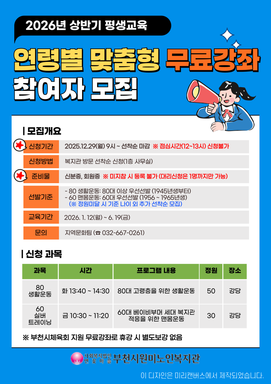 2026년 상반기 연령별 맞춤형 무료강좌 참여자 모집