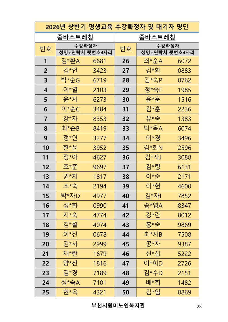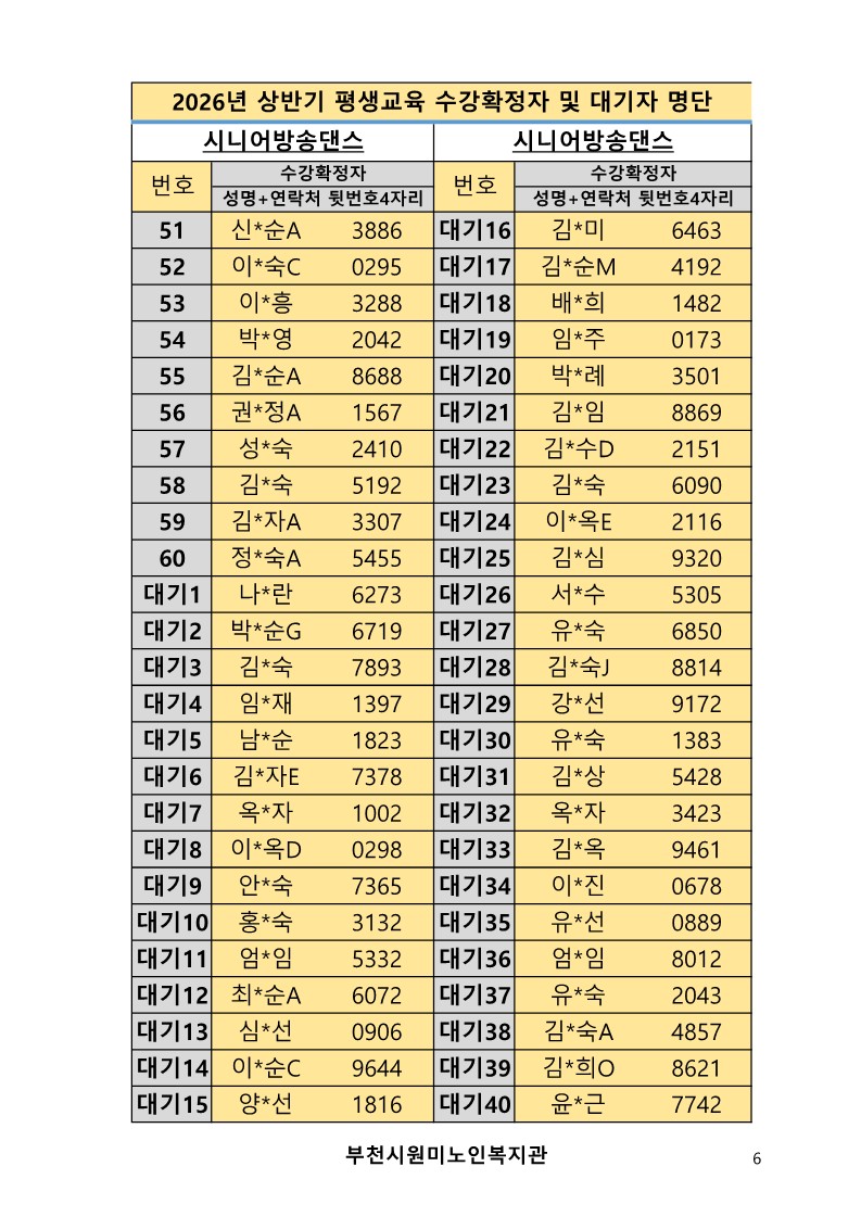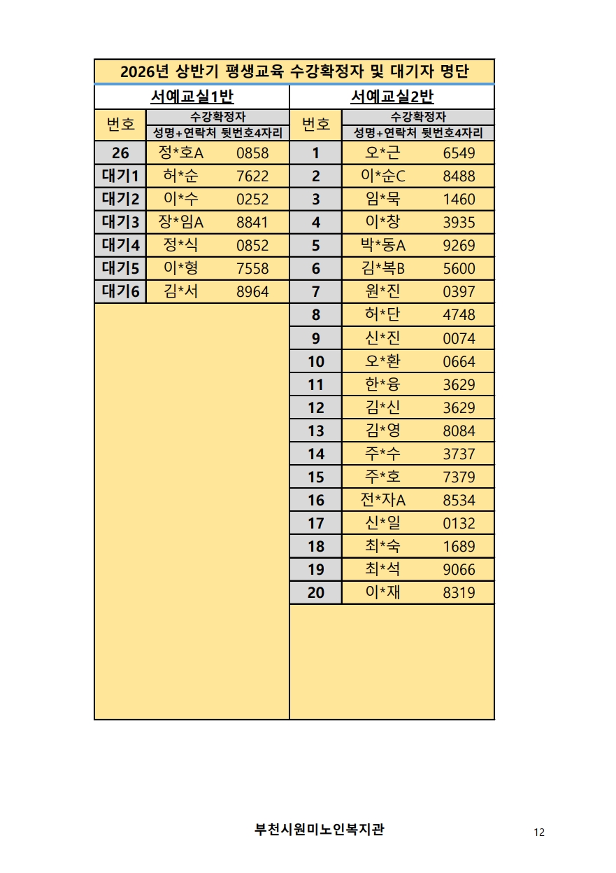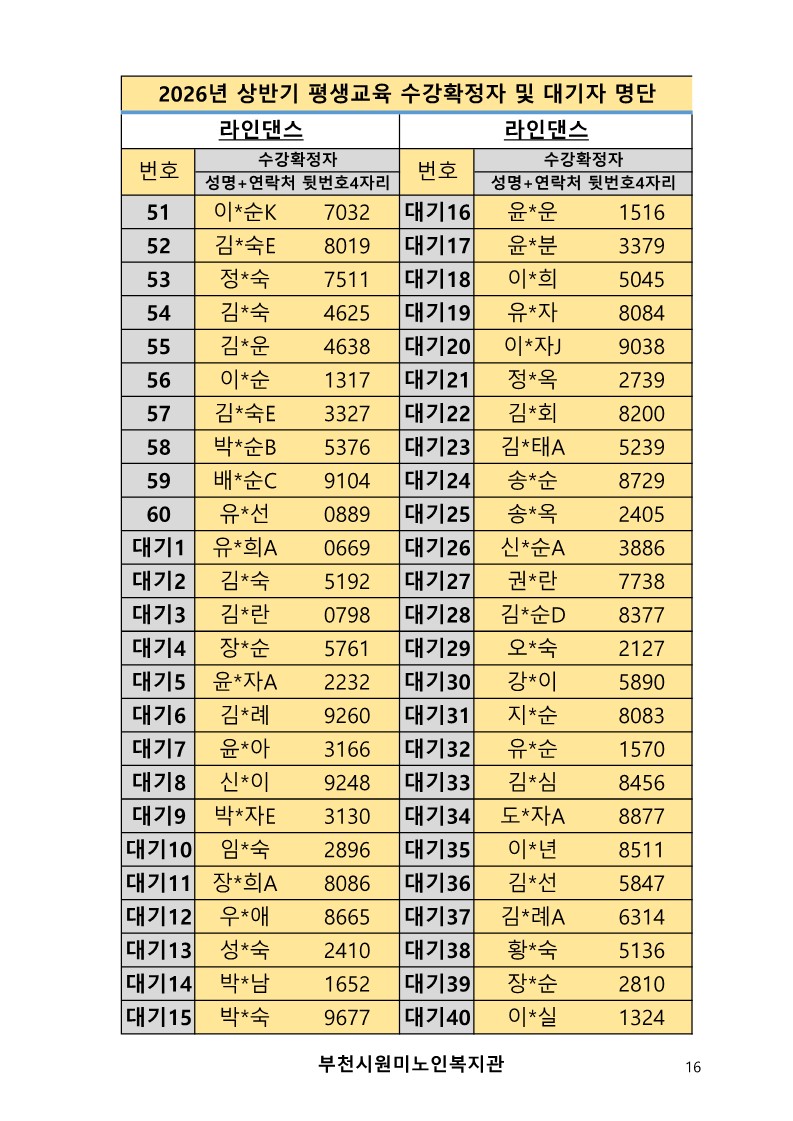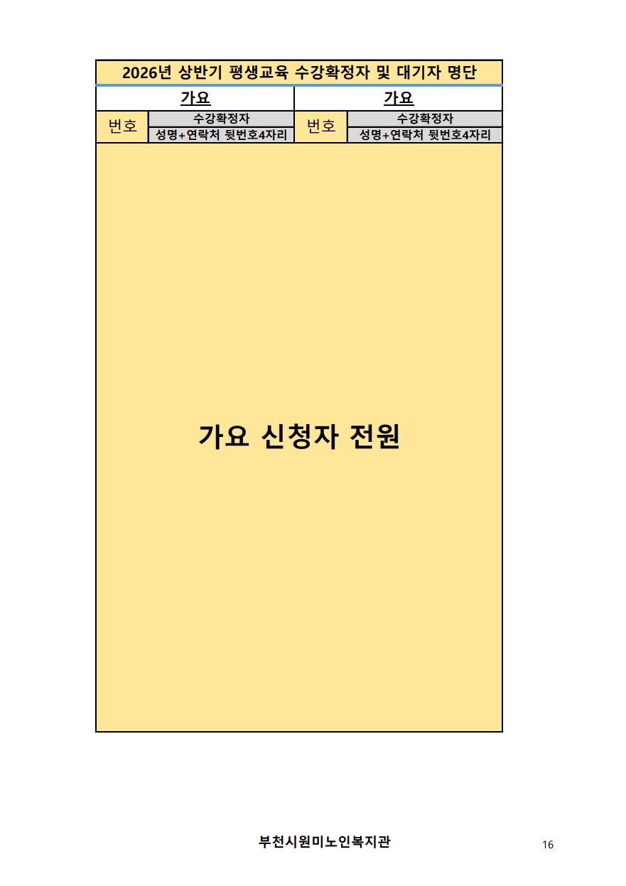 2026년 평생교육 상반기 프로그램 수강신청 결과 발표
