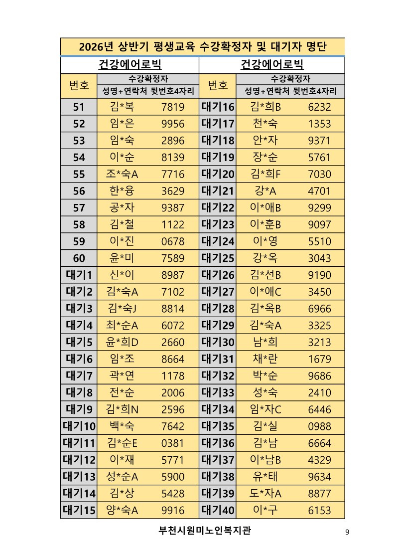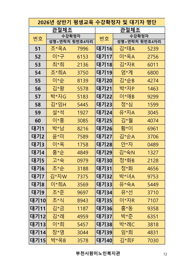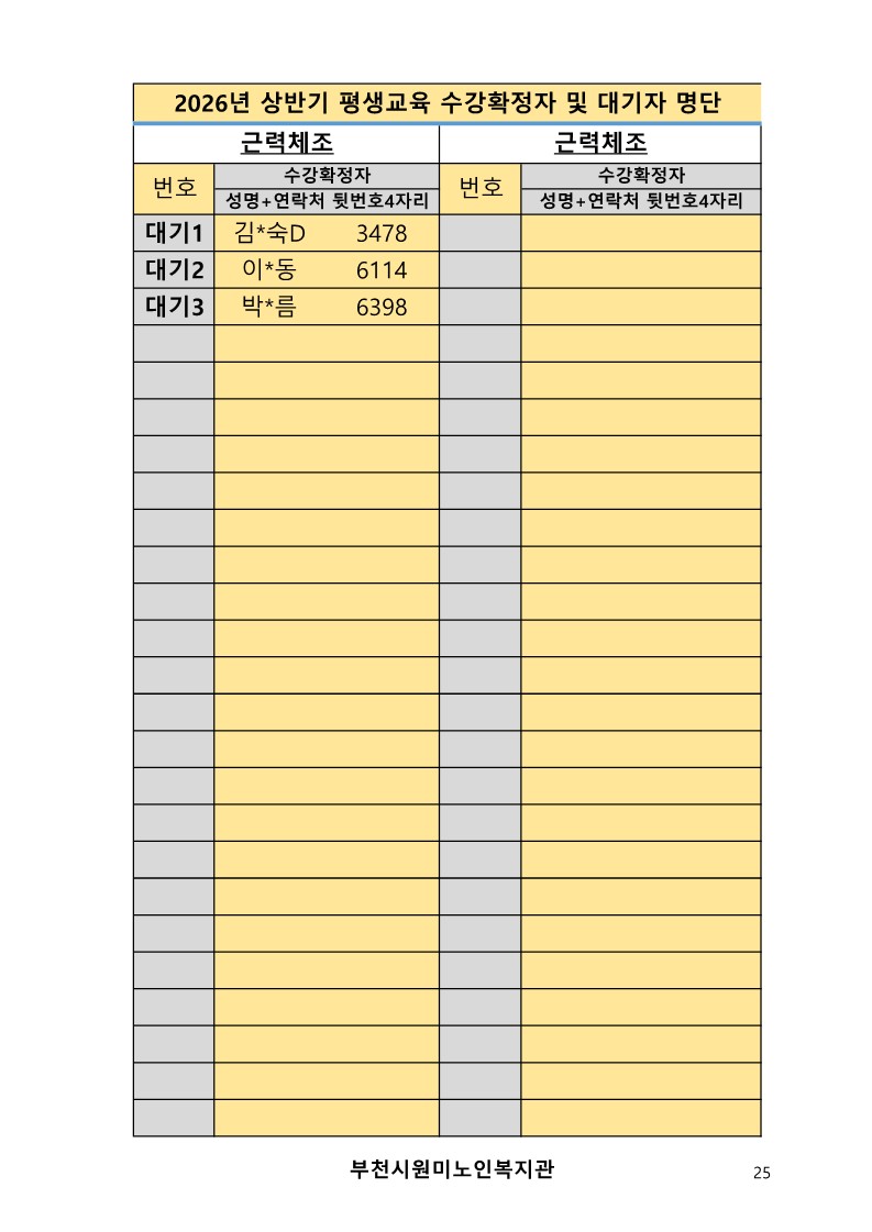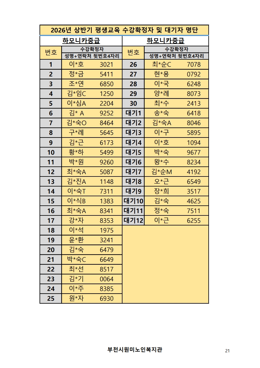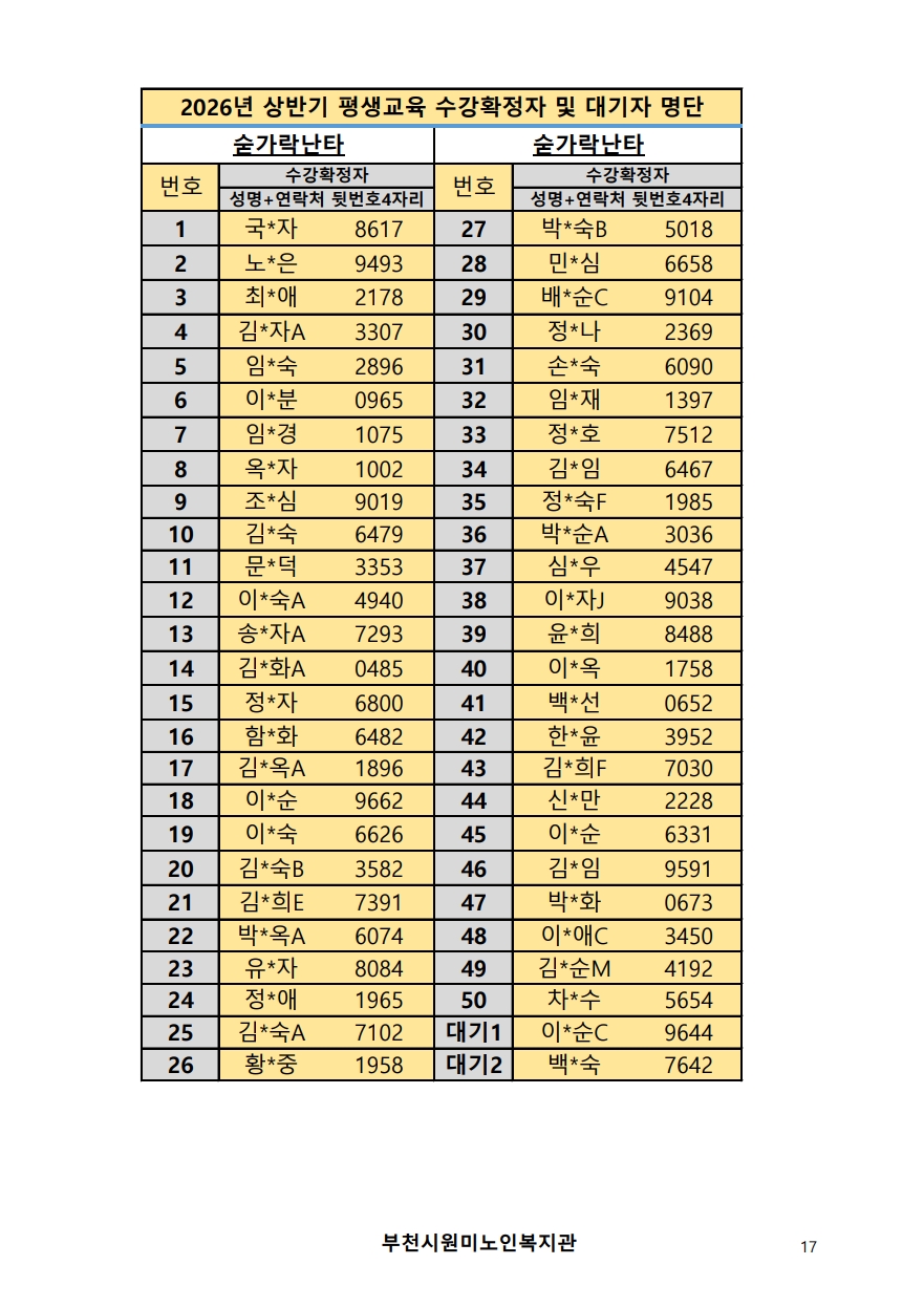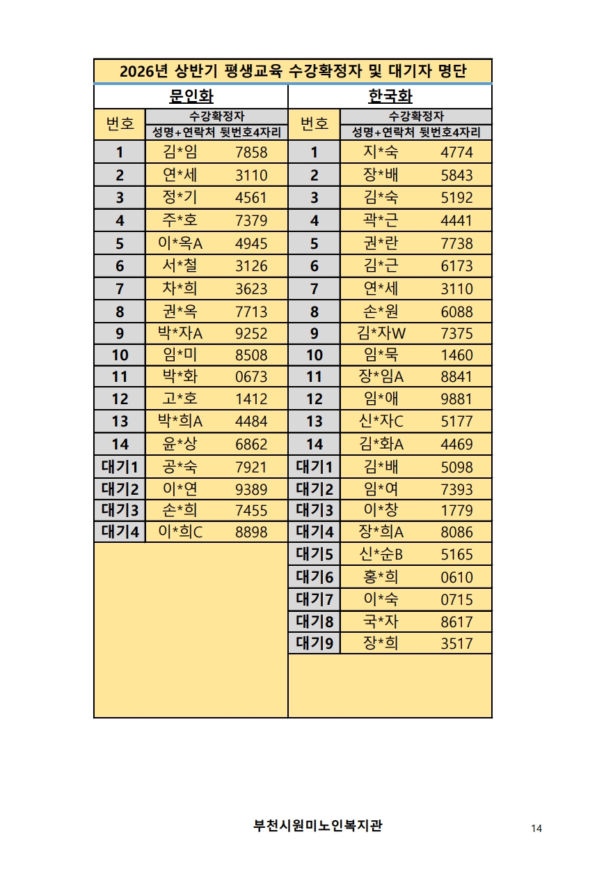 2026년 평생교육 상반기 프로그램 수강신청 결과 발표