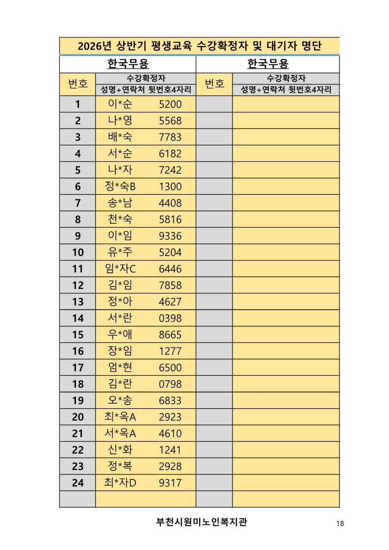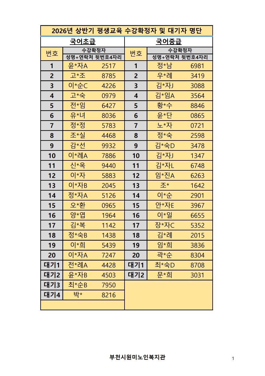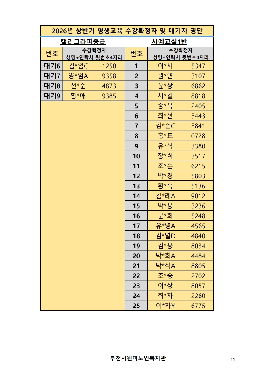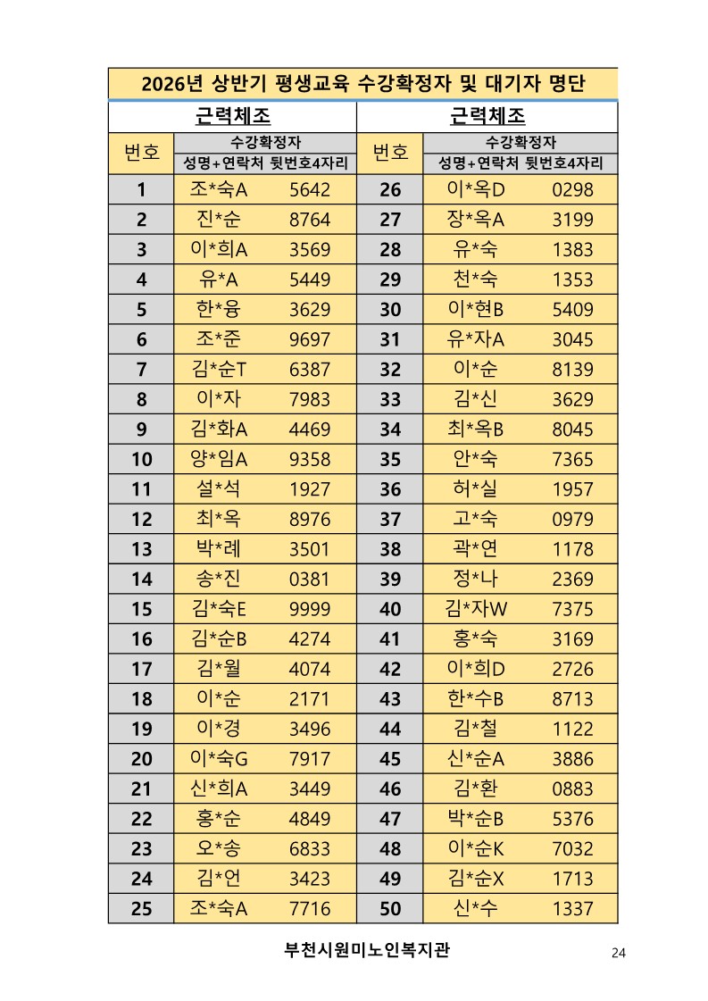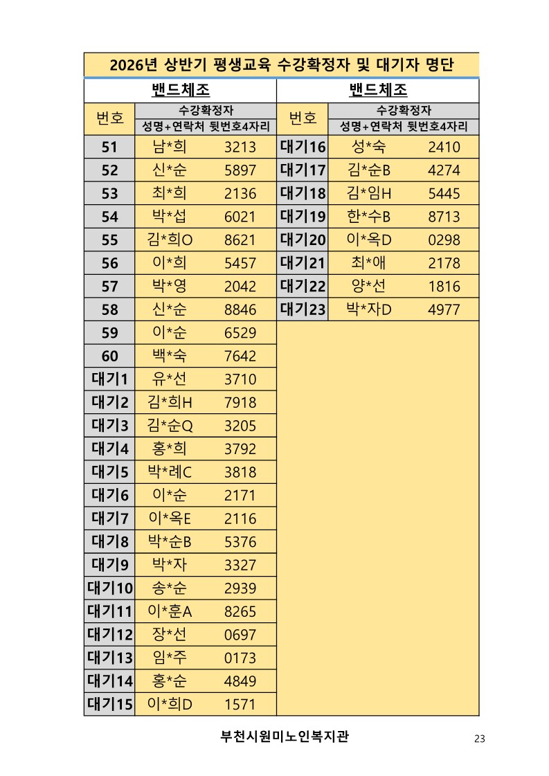 2026년 평생교육 상반기 프로그램 수강신청 결과 발표