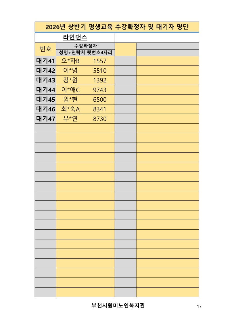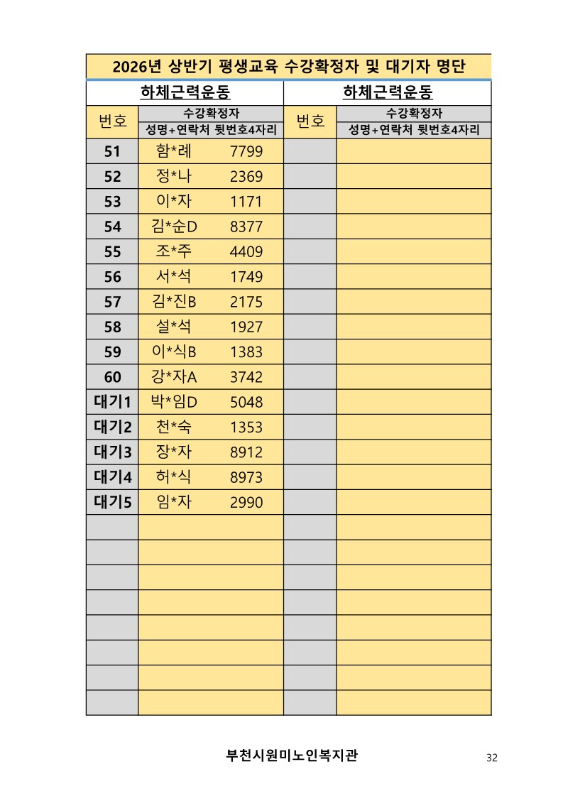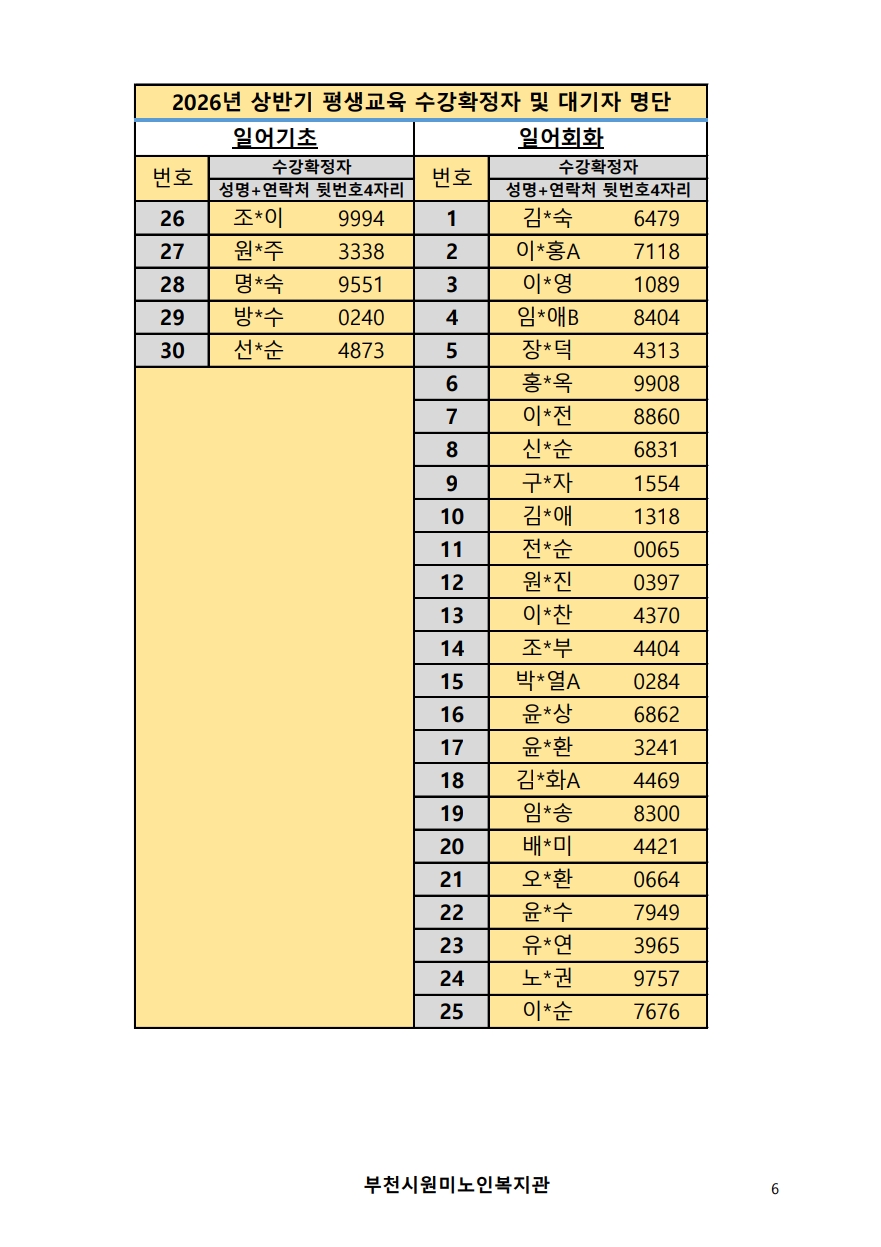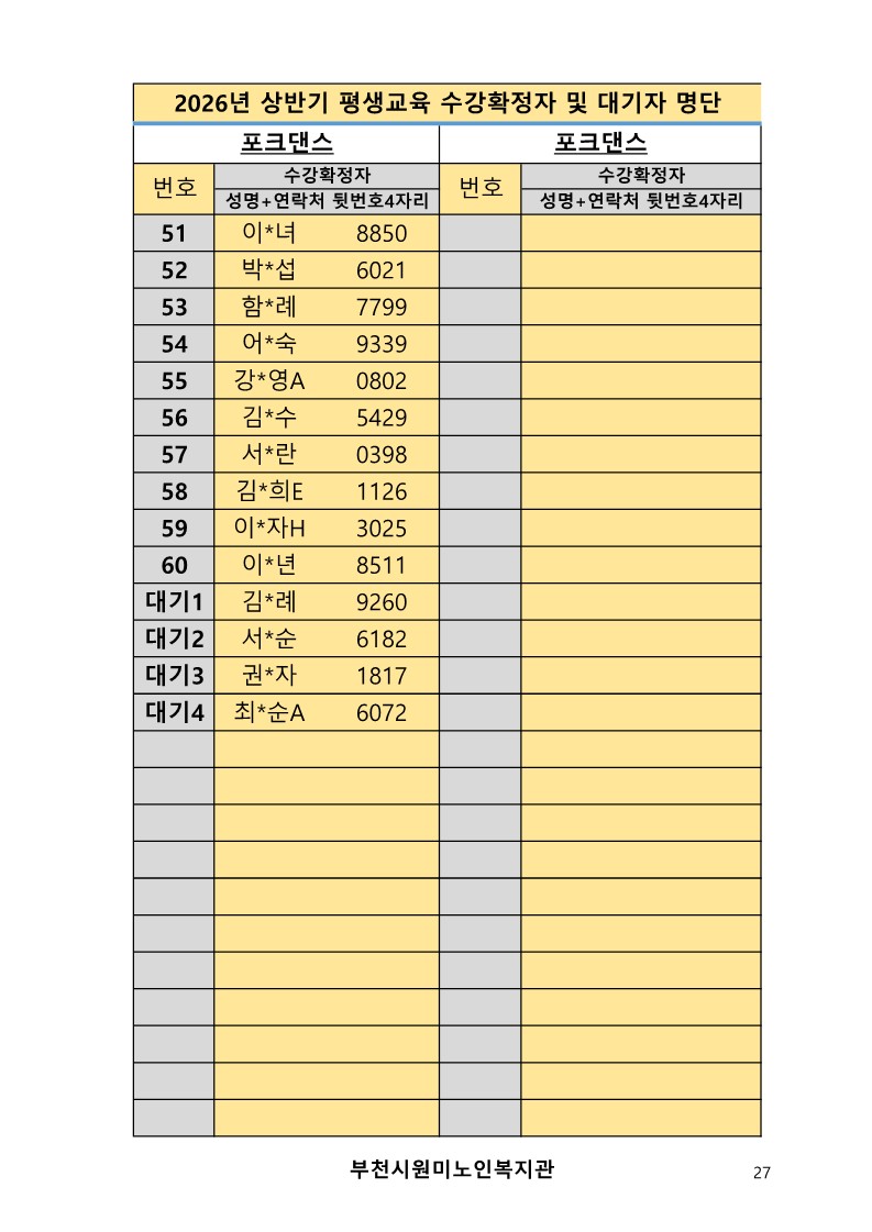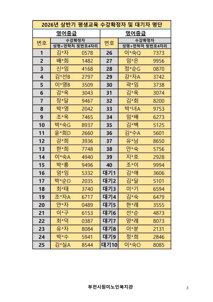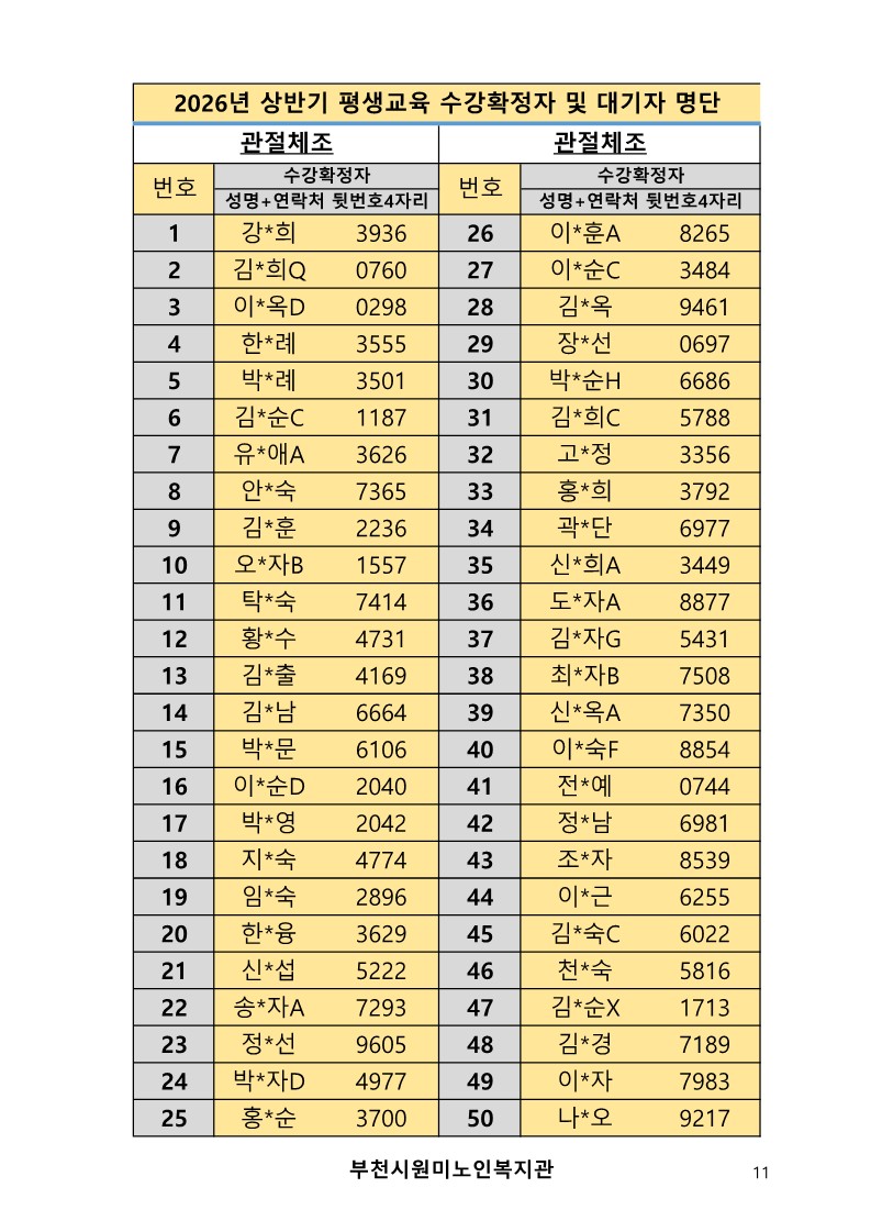 2026년 평생교육 상반기 프로그램 수강신청 결과 발표