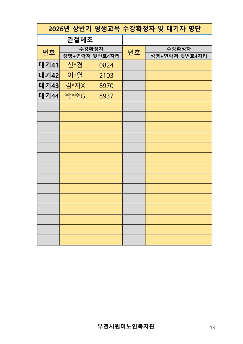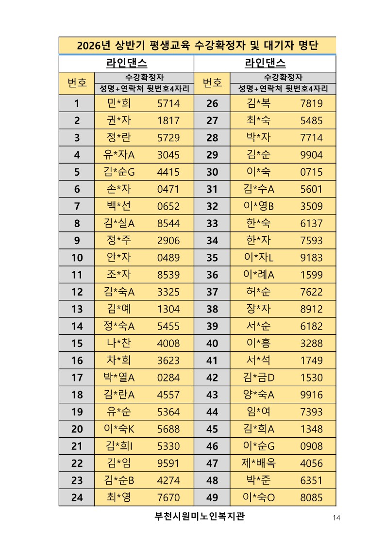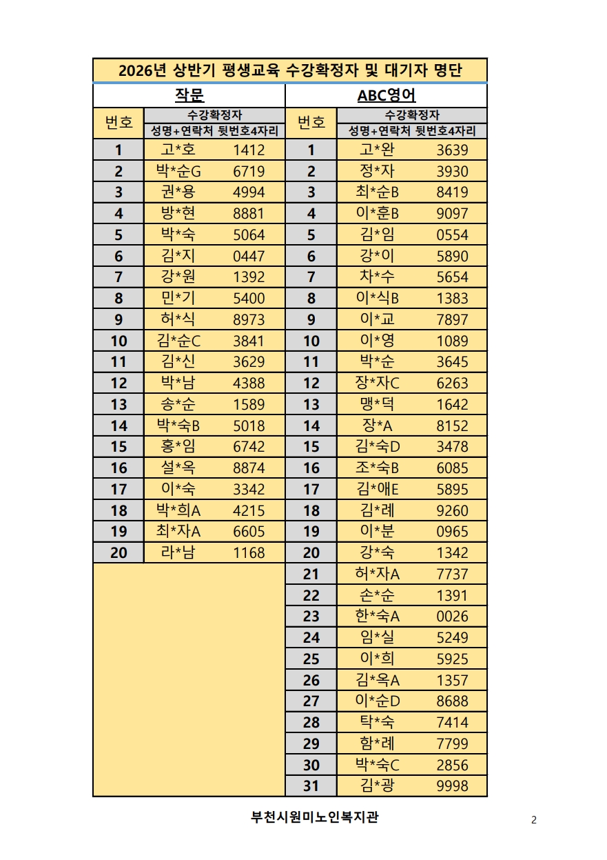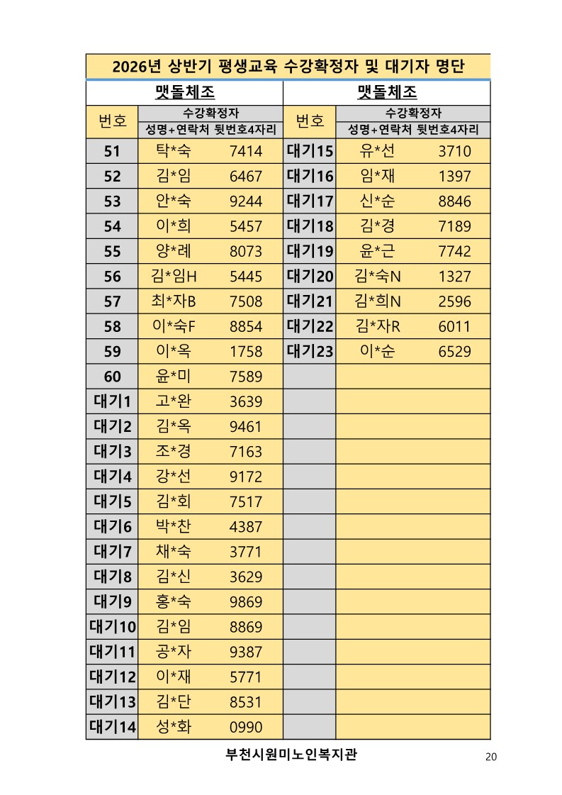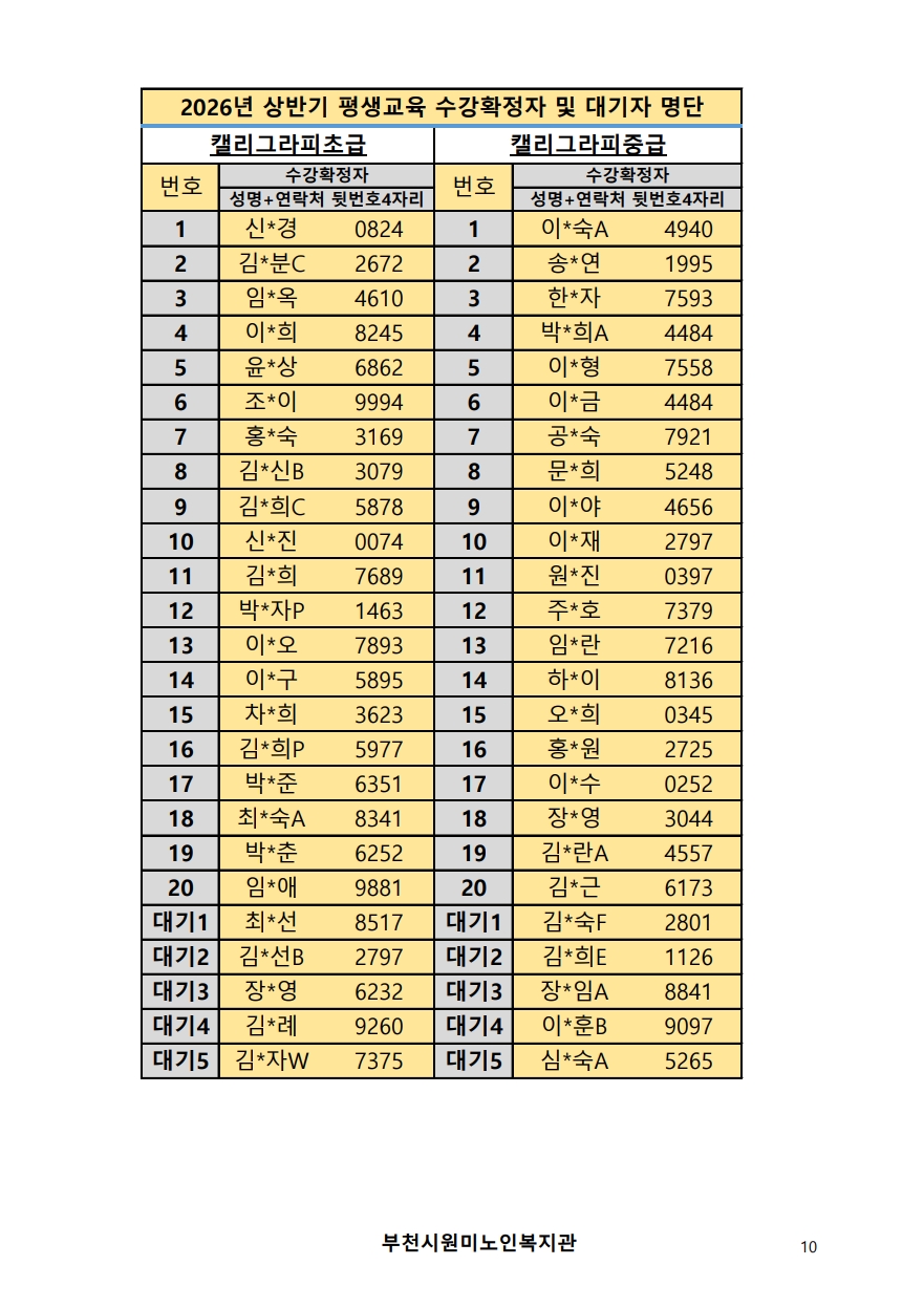 2026년 평생교육 상반기 프로그램 수강신청 결과 발표