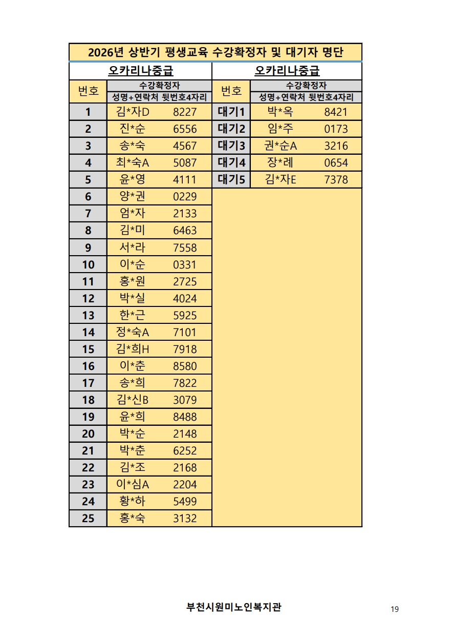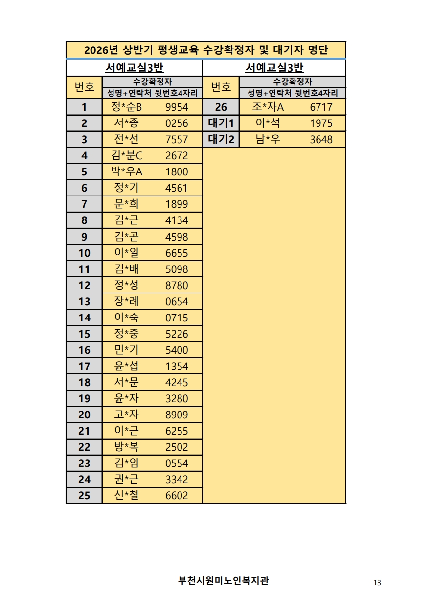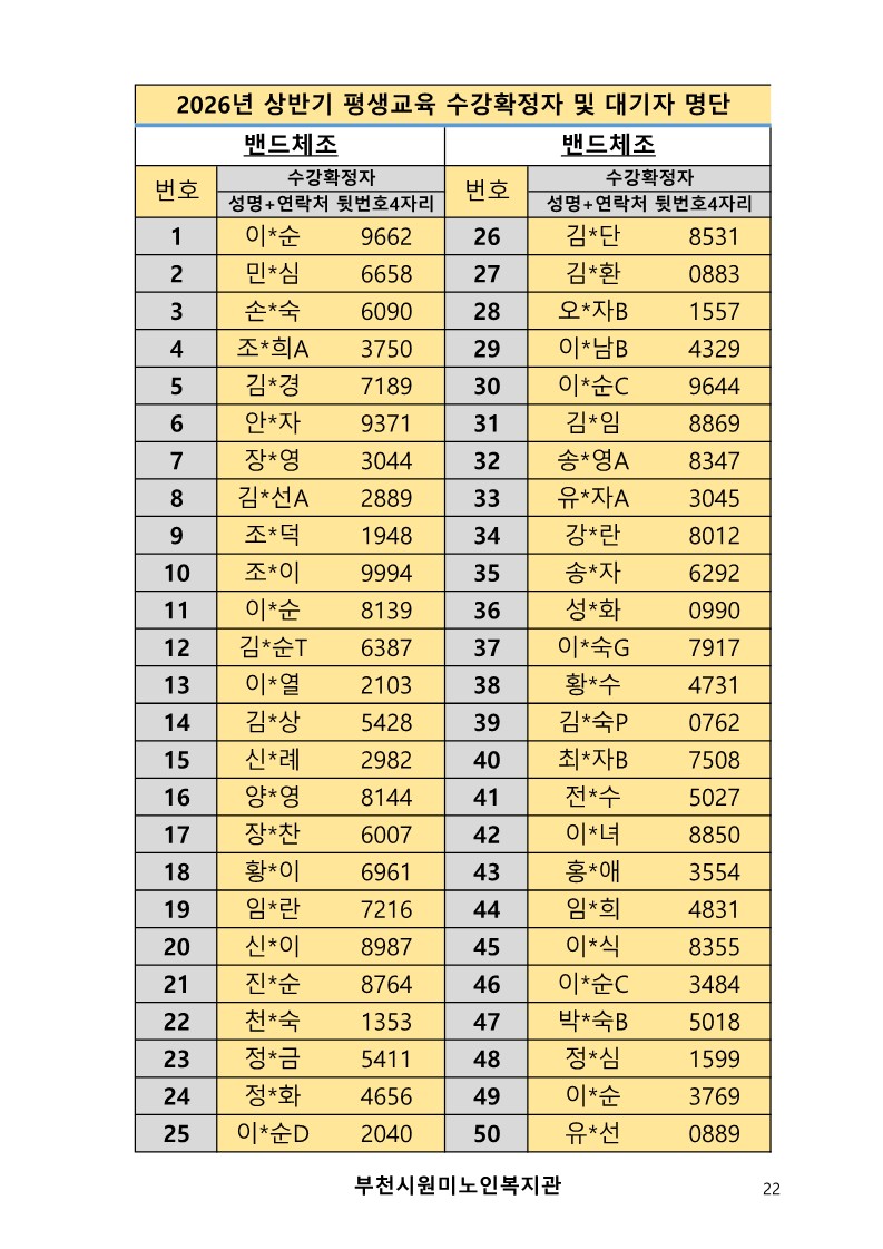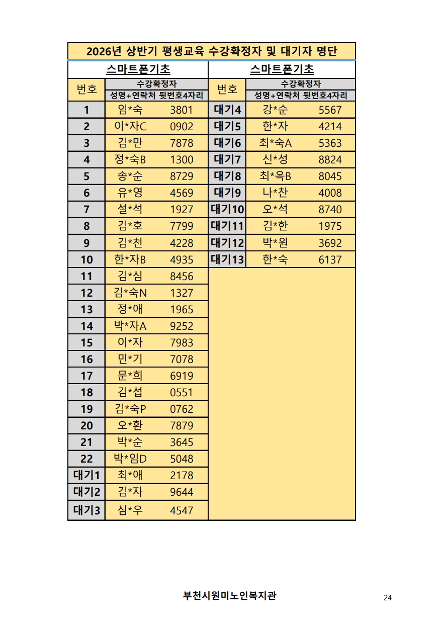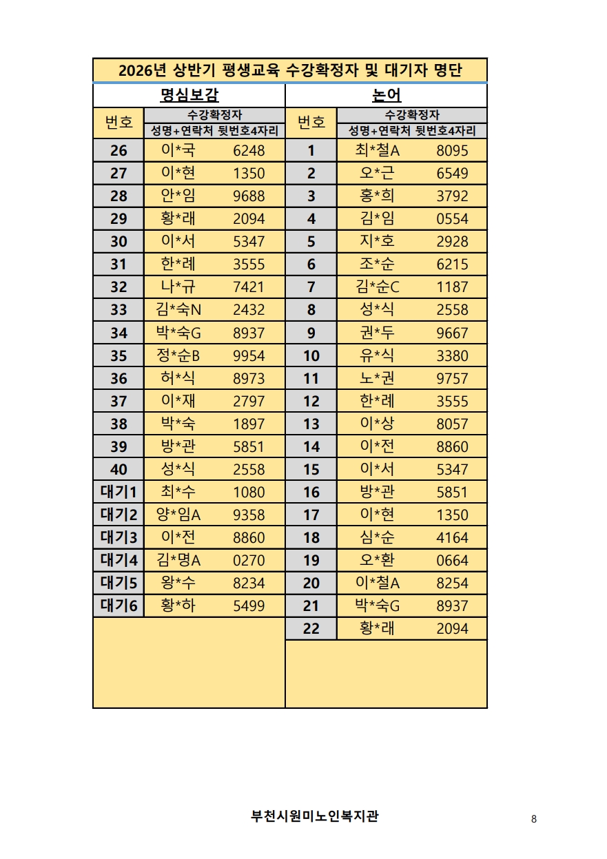 2026년 평생교육 상반기 프로그램 수강신청 결과 발표