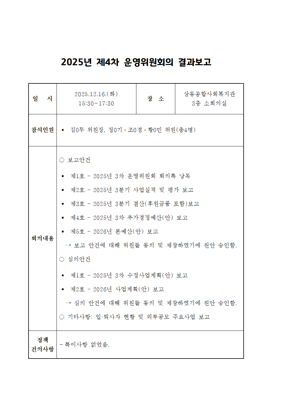 [상동] 2025년 제4차 운영위원회의 결과보고