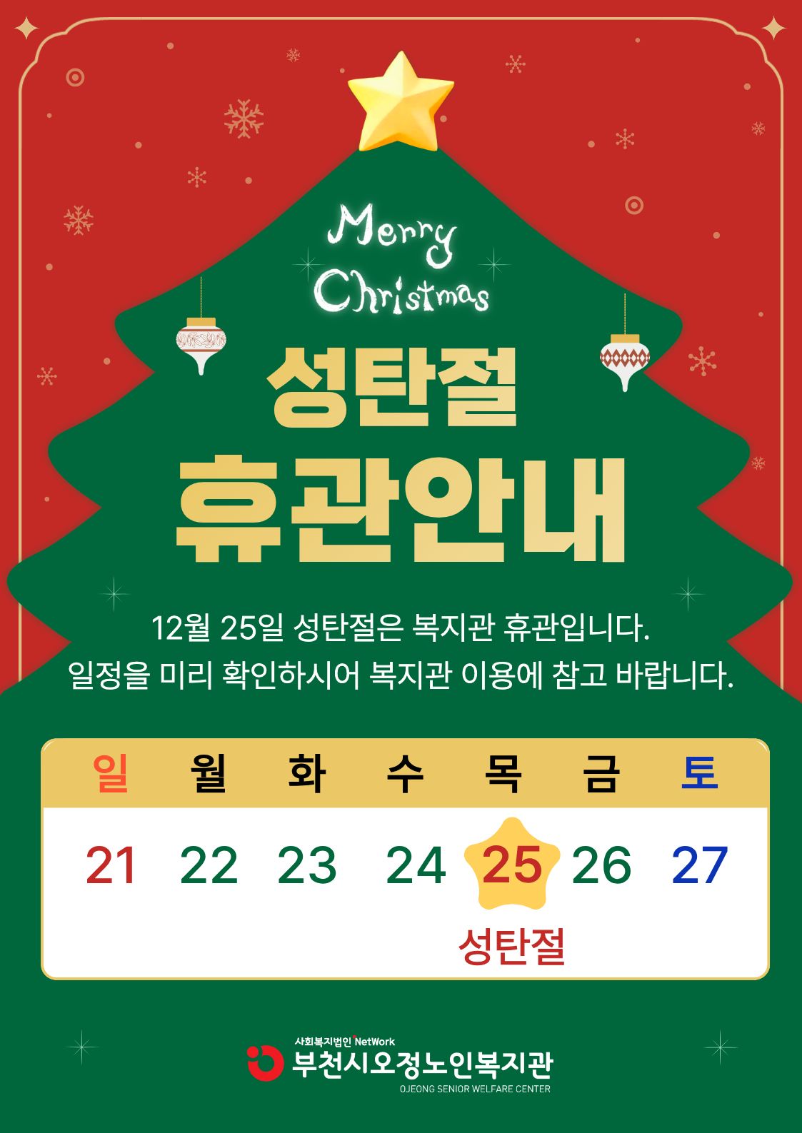 [부천시오정노인복지관] 성탄절 휴관 안내