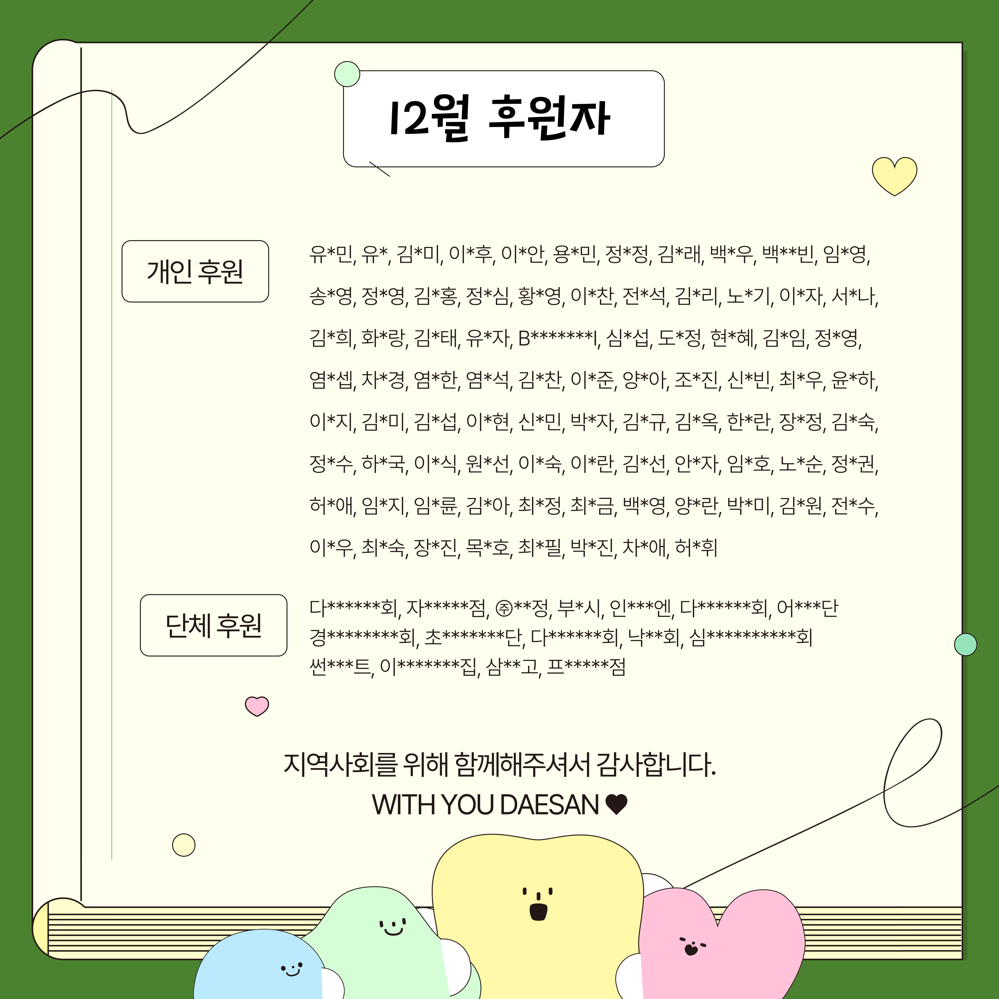 2025년 12월 대산종합사회복지관 후원에 감사드립니다.