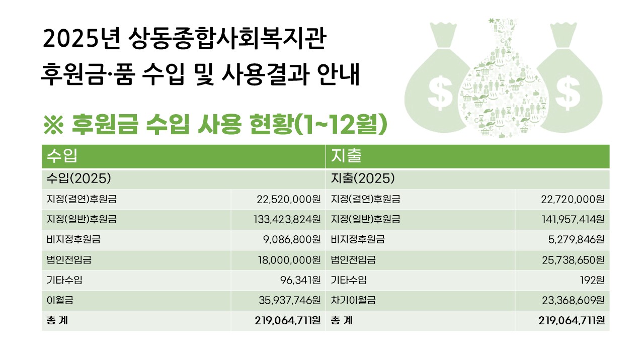[상동공지] 2025년 상동종합사회복지관 후원금품 결산보고
