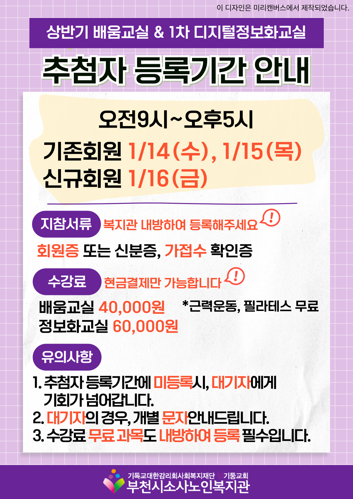 [노년사회화교육사업] 2026년 상반기 배움교실 & 1차 디지털정보화교실 추첨 결과 안내