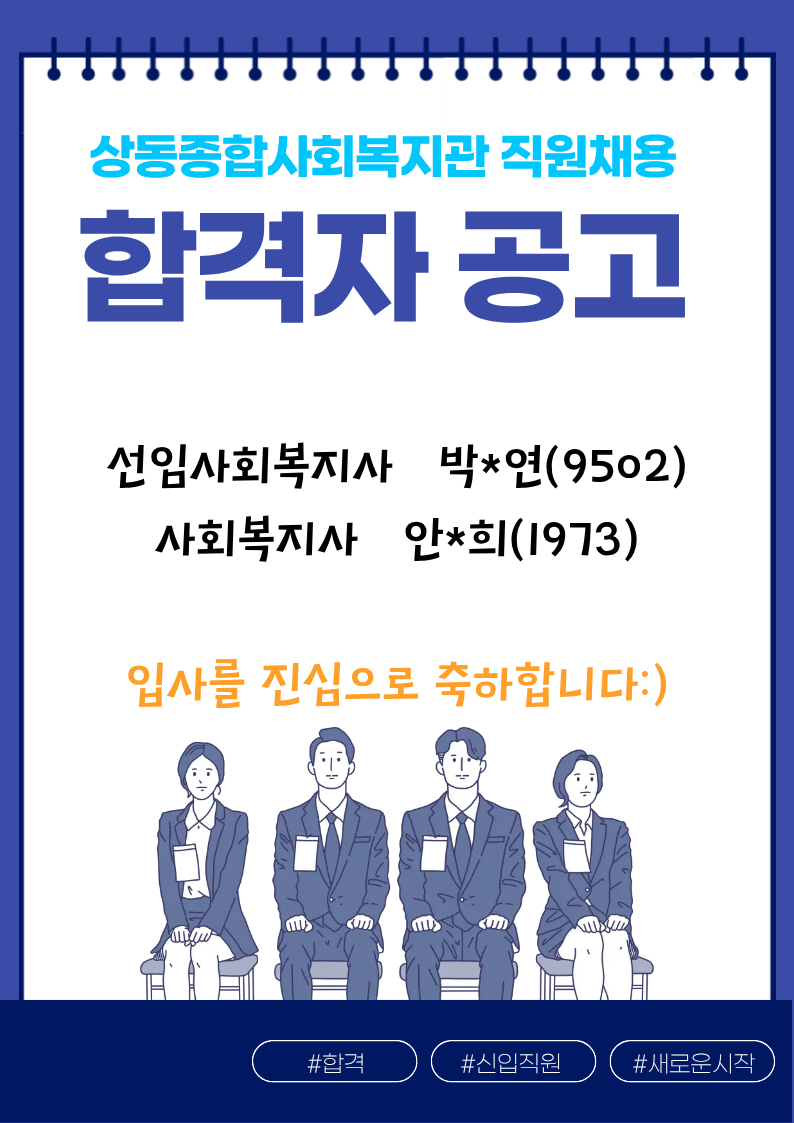 2026년 상동종합사회복지관 정규직 및 육아휴직대체(인력) 사회복지사 최종합격자 안내