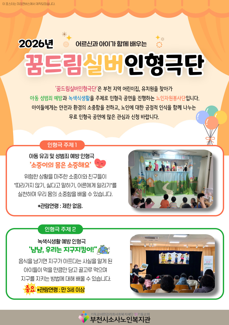 [노인자원봉사자관리사업] 2026년 꿈드림실버인형극단 수요처 모집 안내
