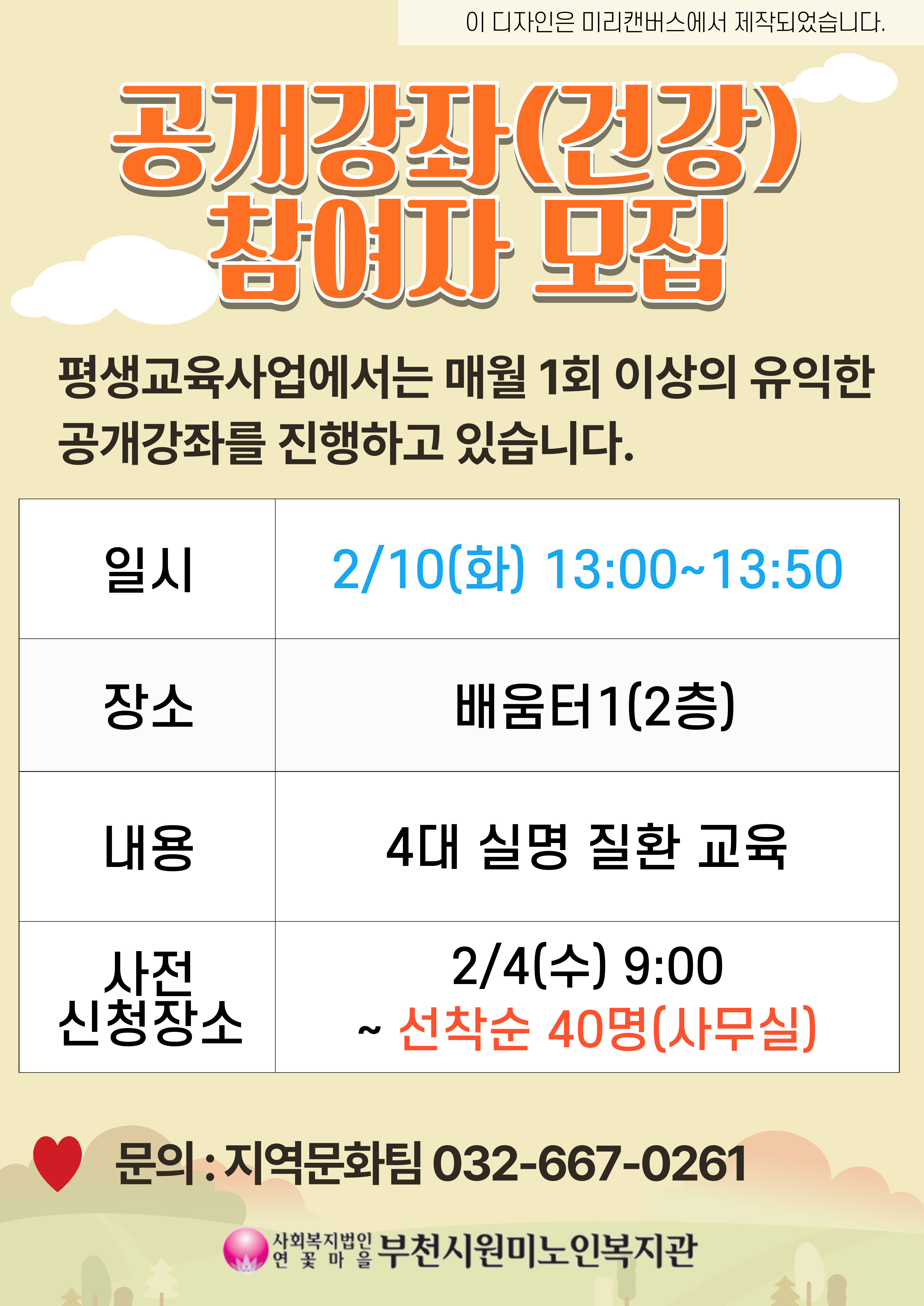 2월 공개강좌 참여 안내 <4대 실명 질환>