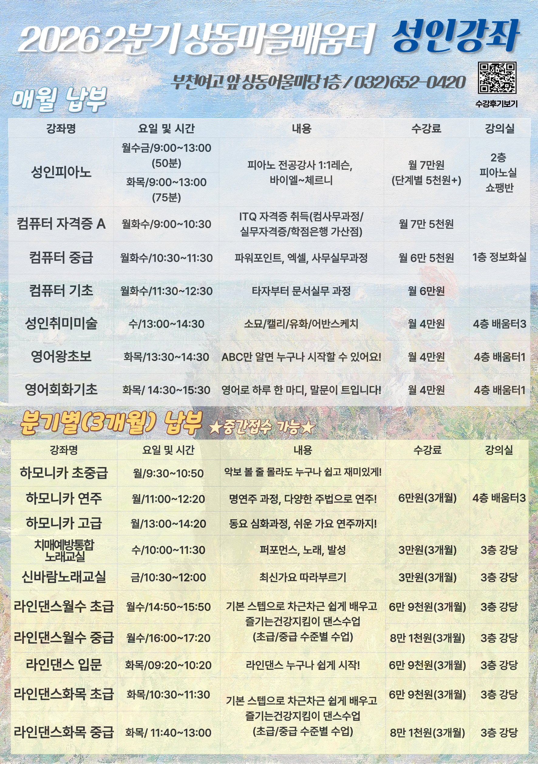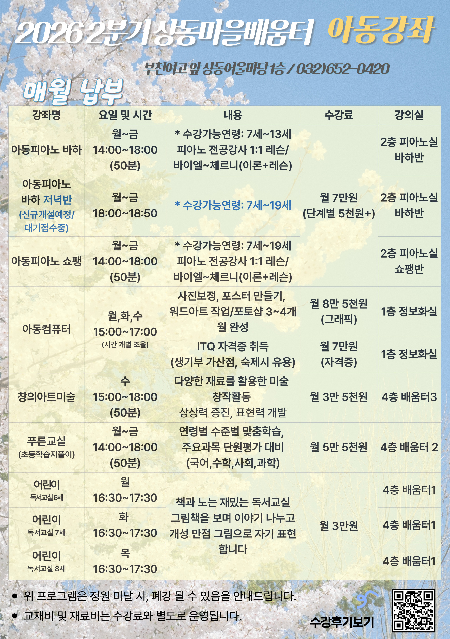 [상동공지] 2026년 2분기(1-3월) 교육문화프로그램 안내