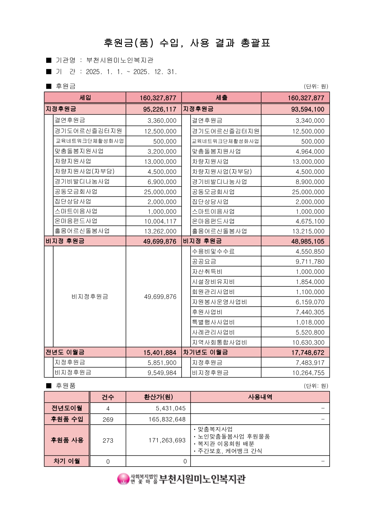 부천시원미노인복지관 2025년 결산(후원) 공고