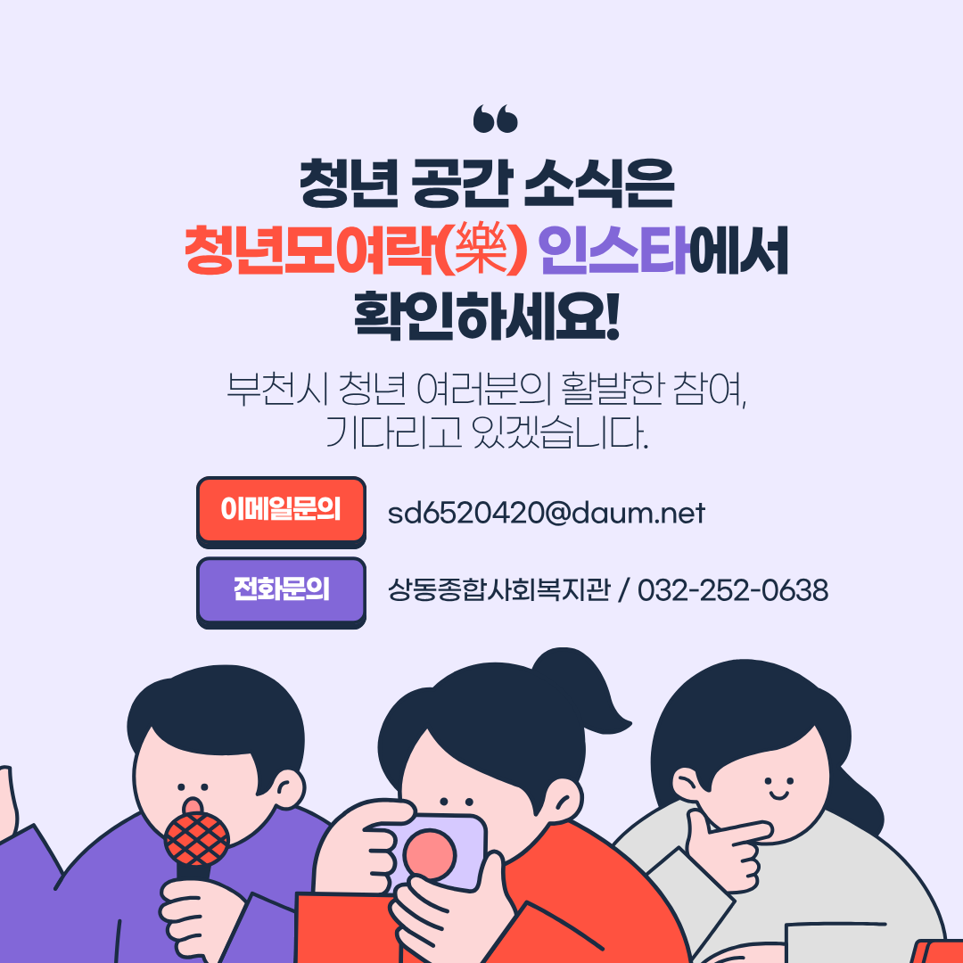 앞으로 청년모여락의 다양한 소식과 프로그램을 이곳에서 만나보세요 😊