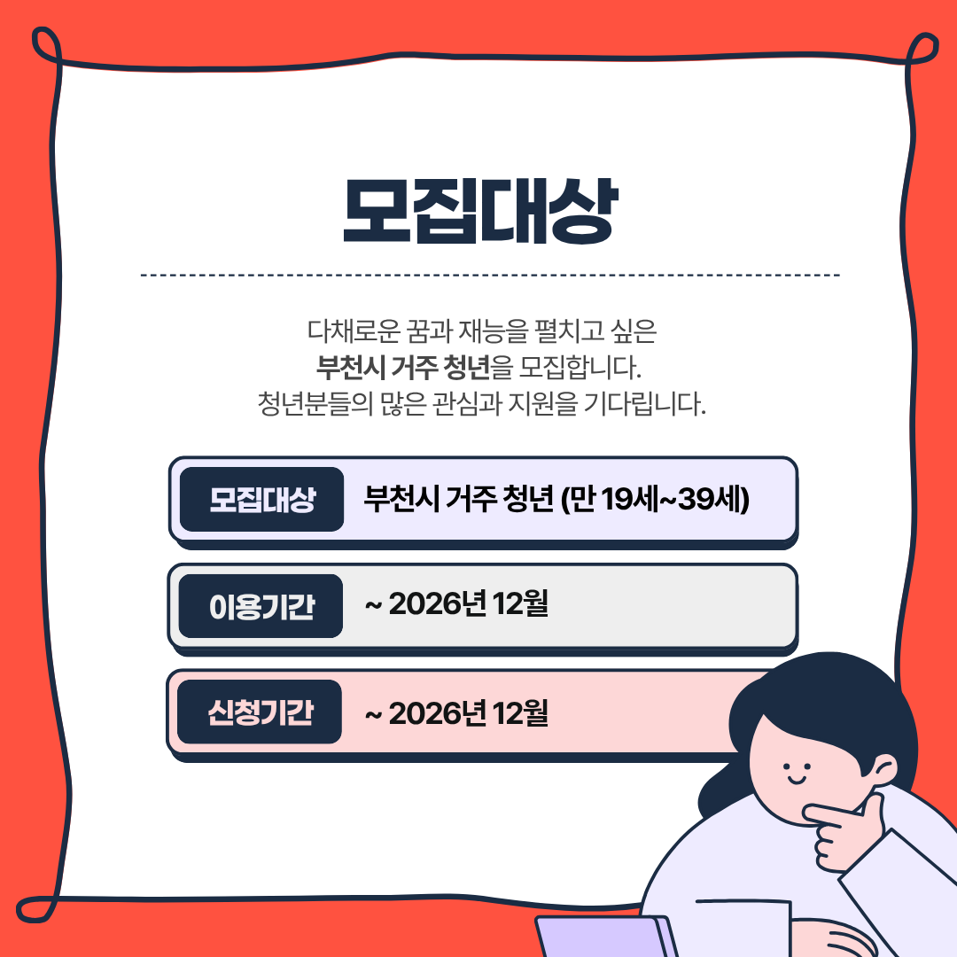 부천에서 활동하는 청년이라면 누구나 이용 가능 !