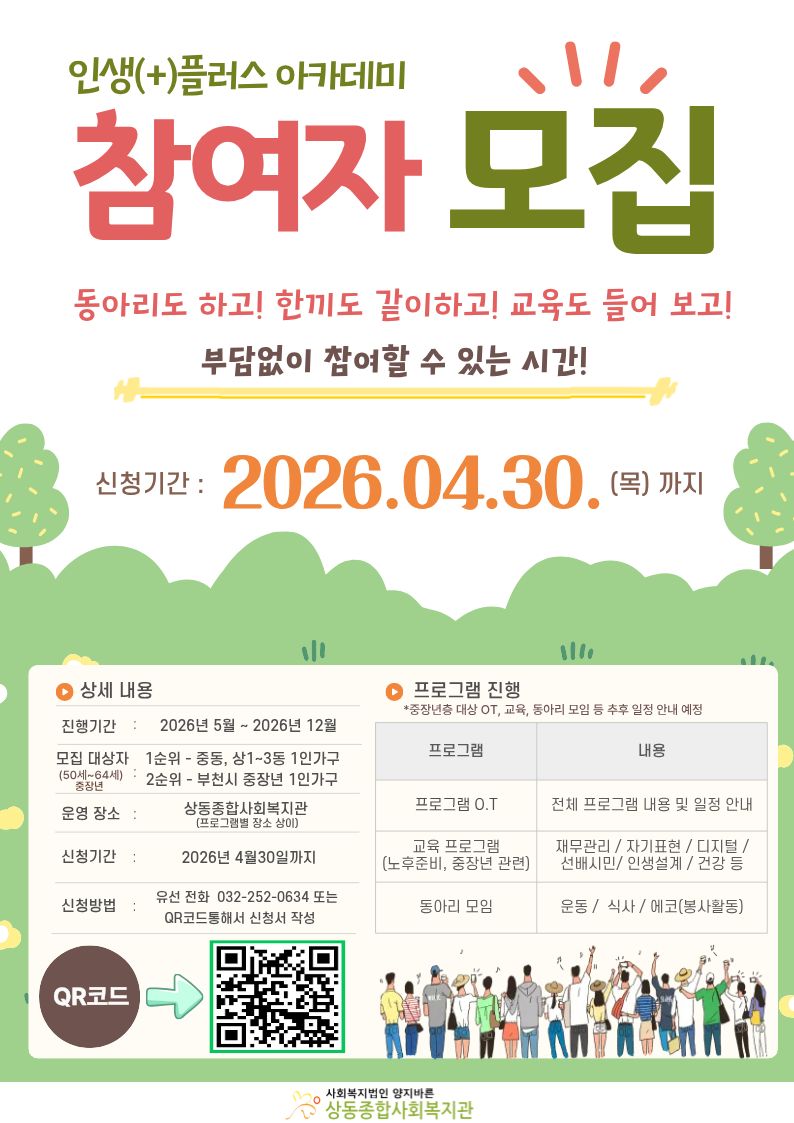 [상동] 인생플러스 아카데미 참여자 모집 안내