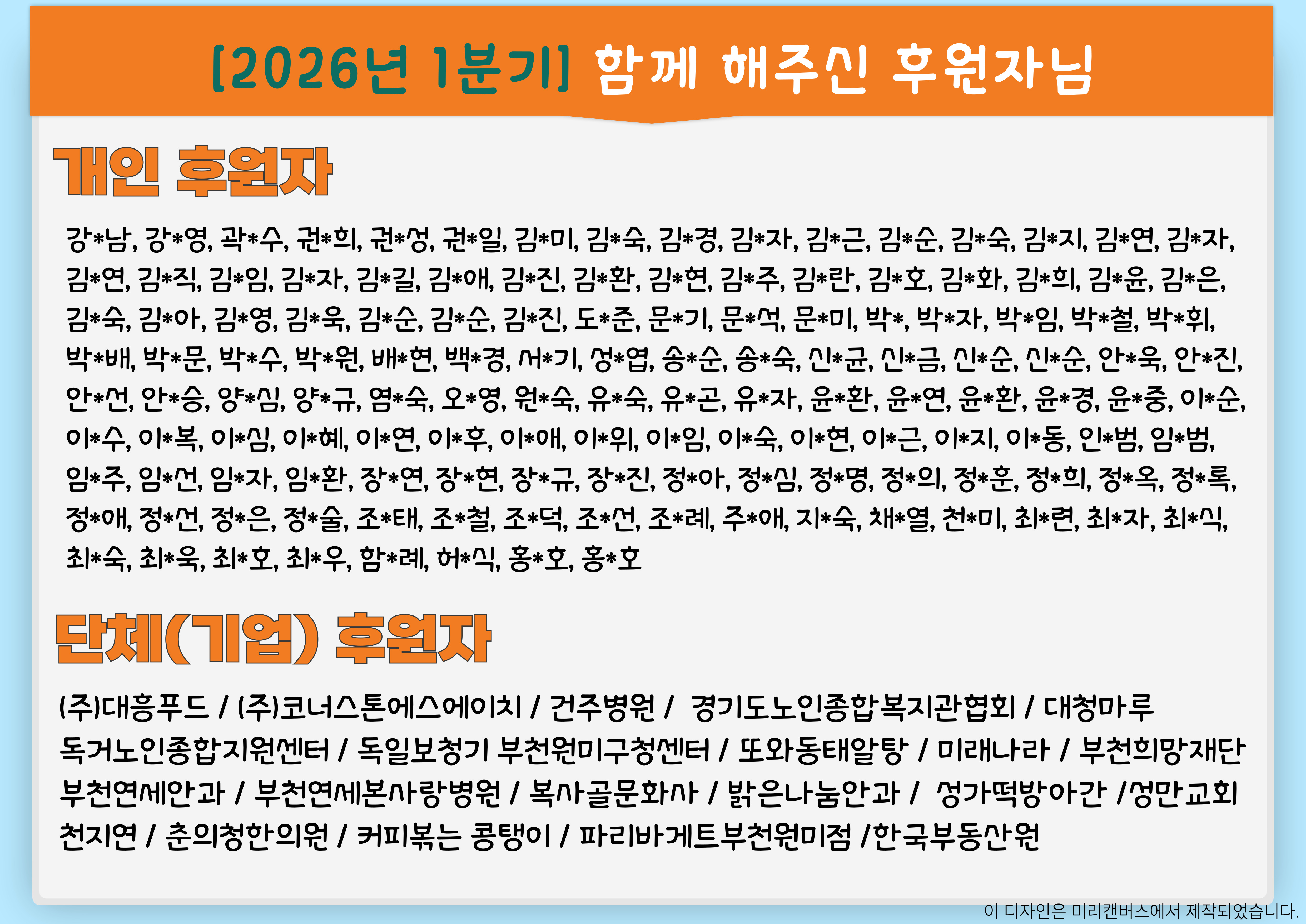 나눔으로 온기를 더해주신 후원자·봉사자 여러분께 깊은 존경과 감사를 표합니다.