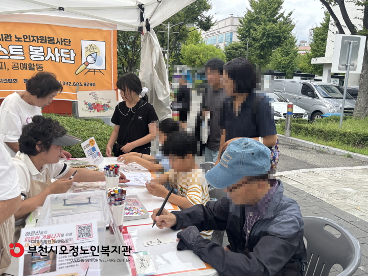 은빛하모니카의 멋진 공연과 "캘리그라피&친환경부스"를 운영한 은빛아티스트 봉사단의 활동으로 부천시민에게 복지관과 어르신들의 다양한 여가활동을 알기고 함께하는 시간을 가졌습니다.