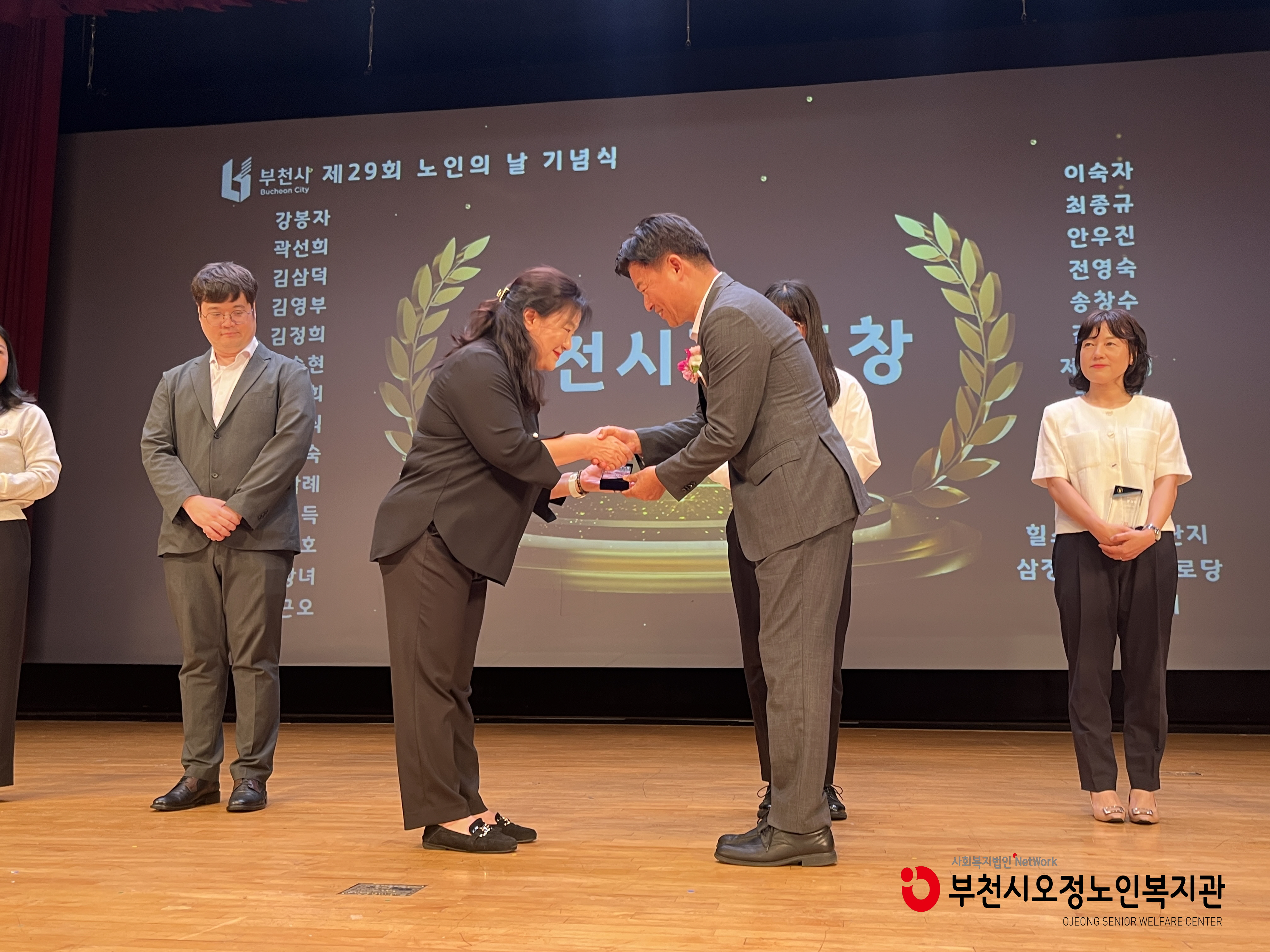이번 기념식에서 부천시오정노인복지관은 아래와 같이 유공자 표창을 수상하였습니다.