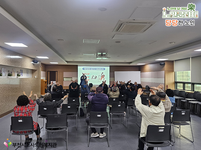 부천시소사노인복지관에서는 어르신들이 스스로의 삶을 당당하게 가꾸어가실 수 있도록, ‘노인문화제 樂’의 첫 번째 테마로 ‘당당한 노인’을 주제로 한 행사를 진행했습니다.