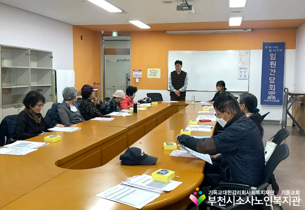 노년사회화교육사업에서 4분기 임원 간담회가 진행되었습니다. 11/27(목)은 동아리 임원 간담회를, 11/28(금)은 배움교실 임원간담회를 실시했습니다.