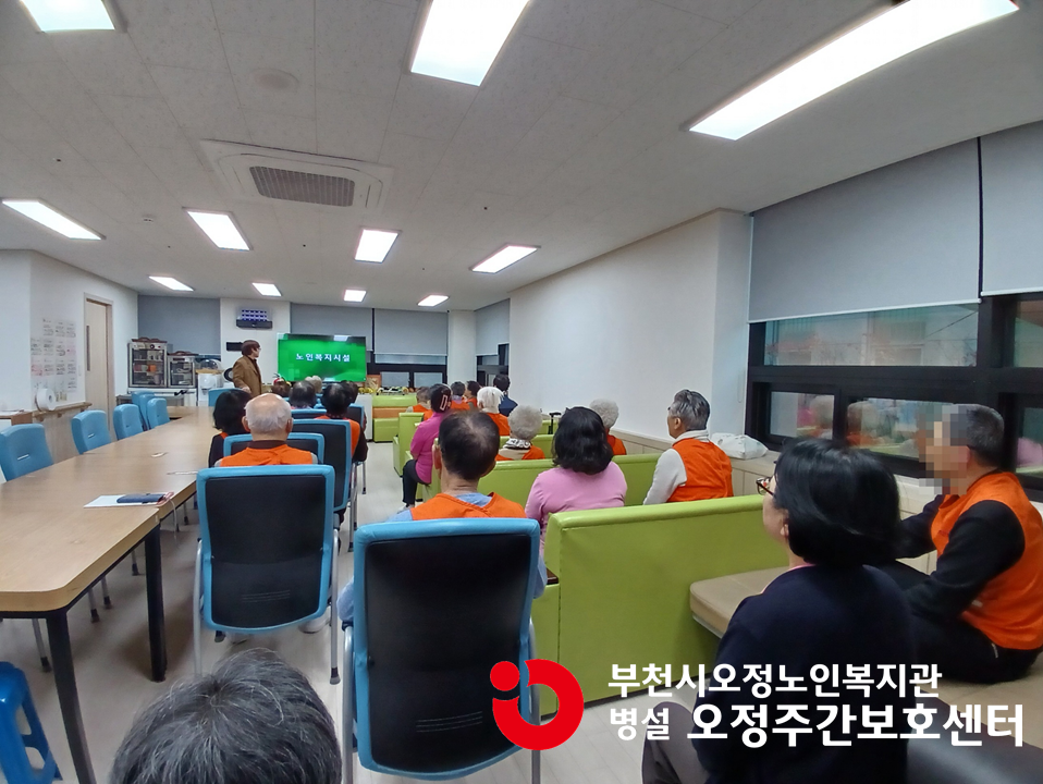 어르신들이 항시 안전한 환경에서 생활할 수 있도록 노력하는 오정주간보호센터가 되겠습니다.