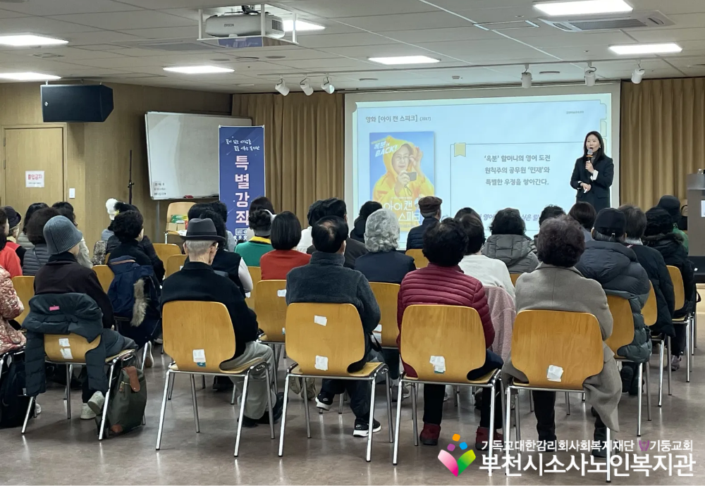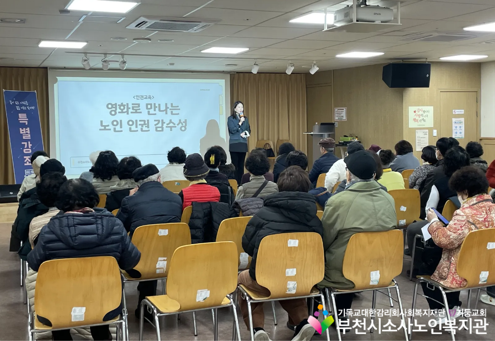 부천시소사노인복지관에서는 겨울방학을 맞이하여 어르신들을 위한 특강을 진행했습니다! 그 중 첫 번째 특강은 '영화로 배우는 노년의 권리'를 주제로 마련이 되었는데요,