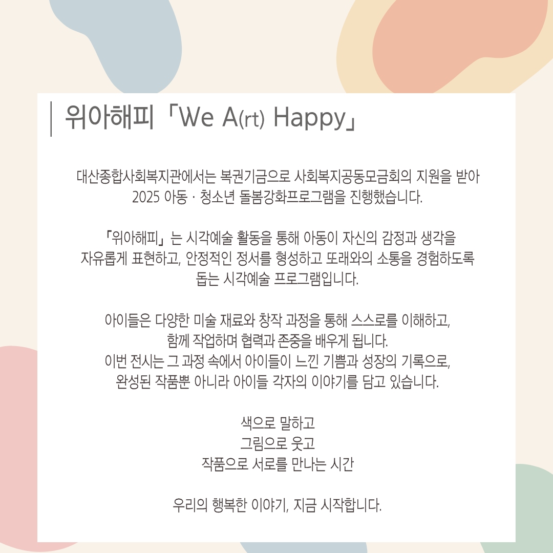 2025년 복권기금 아동·청소년 돌봄강화 위아해피「We A(rt) Happy」