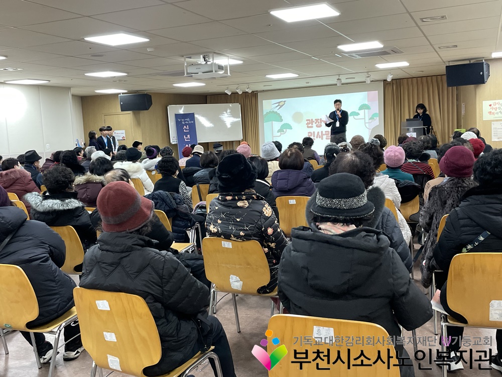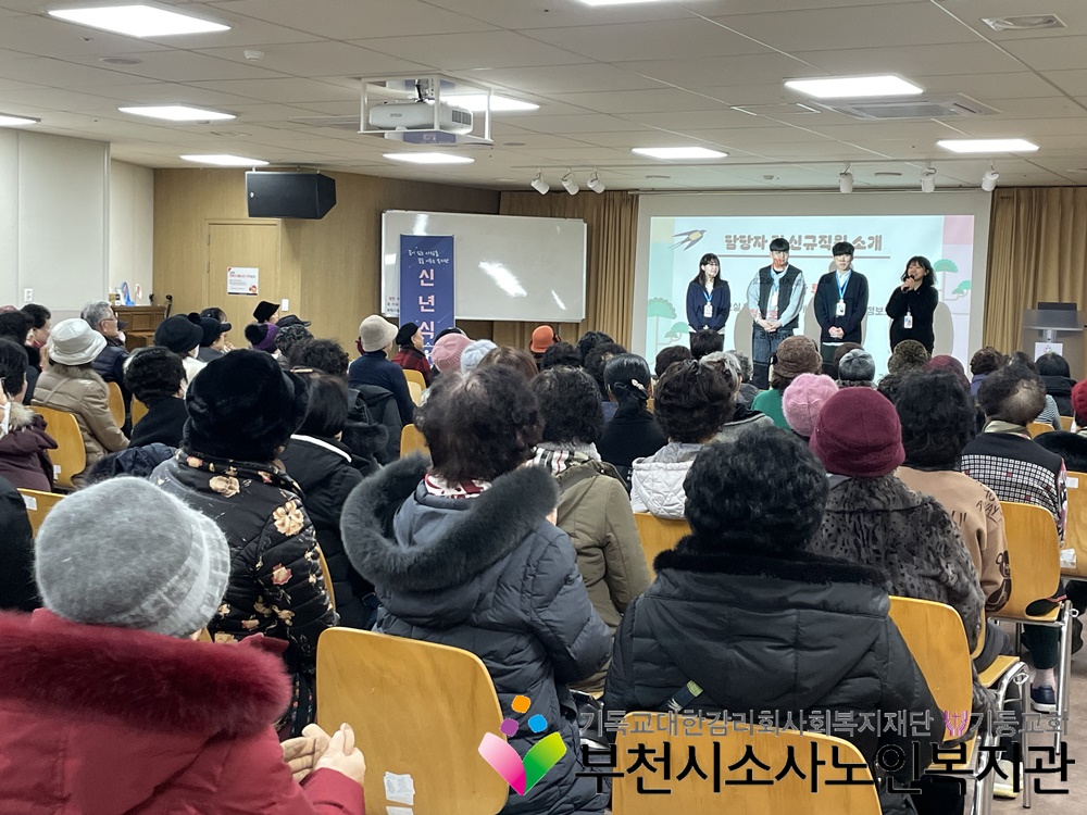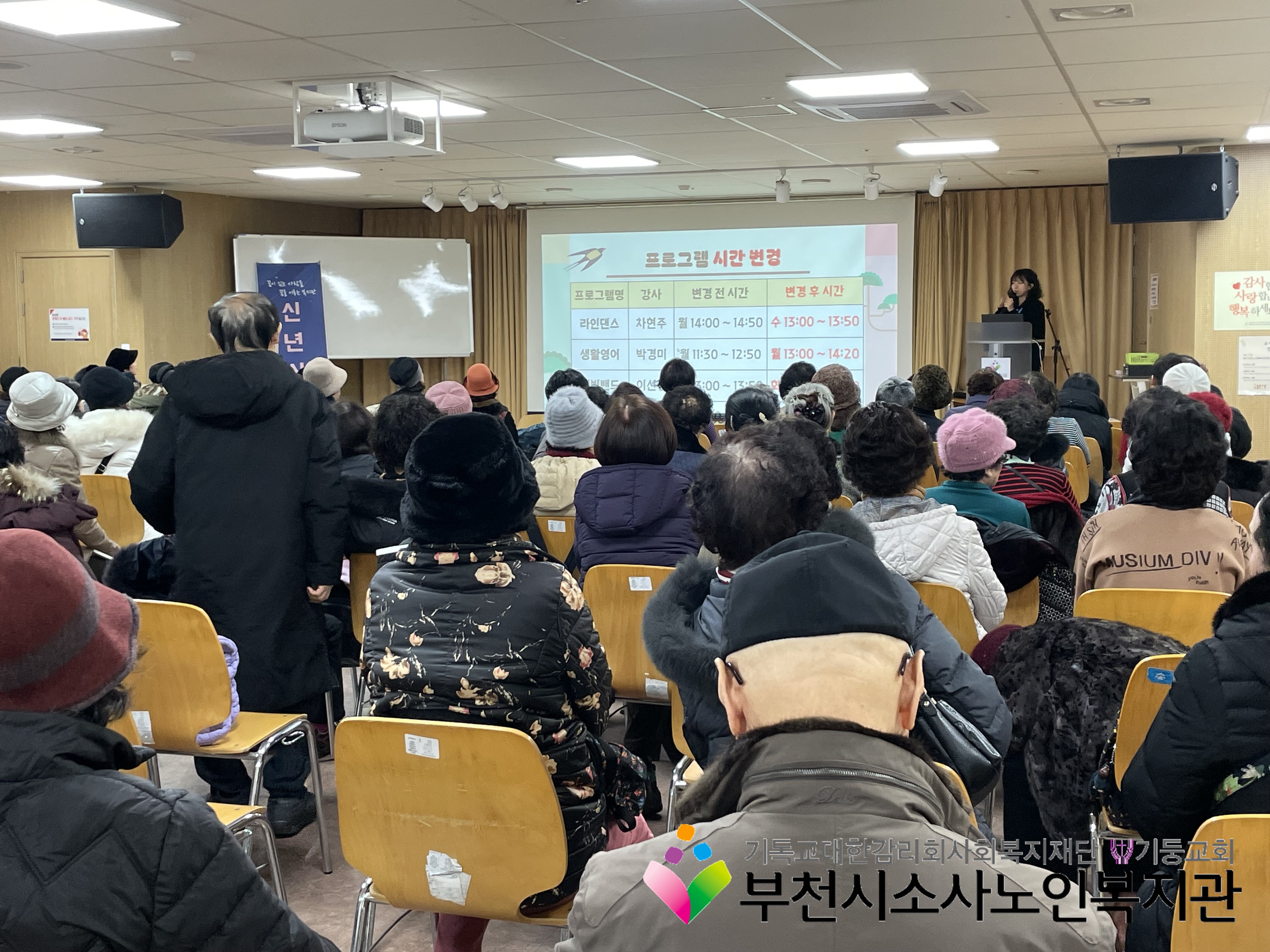 노년사회화교육사업에서는 2026년 새해를 맞아 신년식을 진행했습니다. 관장님, 부장님 새해 인사에 이어 프로그램의 개강을 알리고, 공지사항을 전달했습니다!