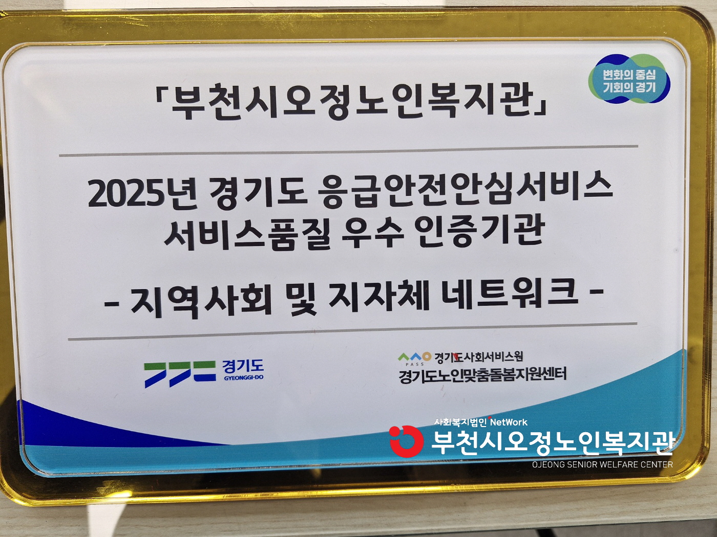 부천시오정노인복지관은 2025년 경기도 내 35개 수행기관 중 응급안전안심서비스를 우수하게 수행하여 “지역사회 및 지자체네트워크” 분야에서 뛰어난 성과를 인정받아 경기도 노인맞춤돌봄서비스 서비스품질 우수 수행기관으로 선정되었다.