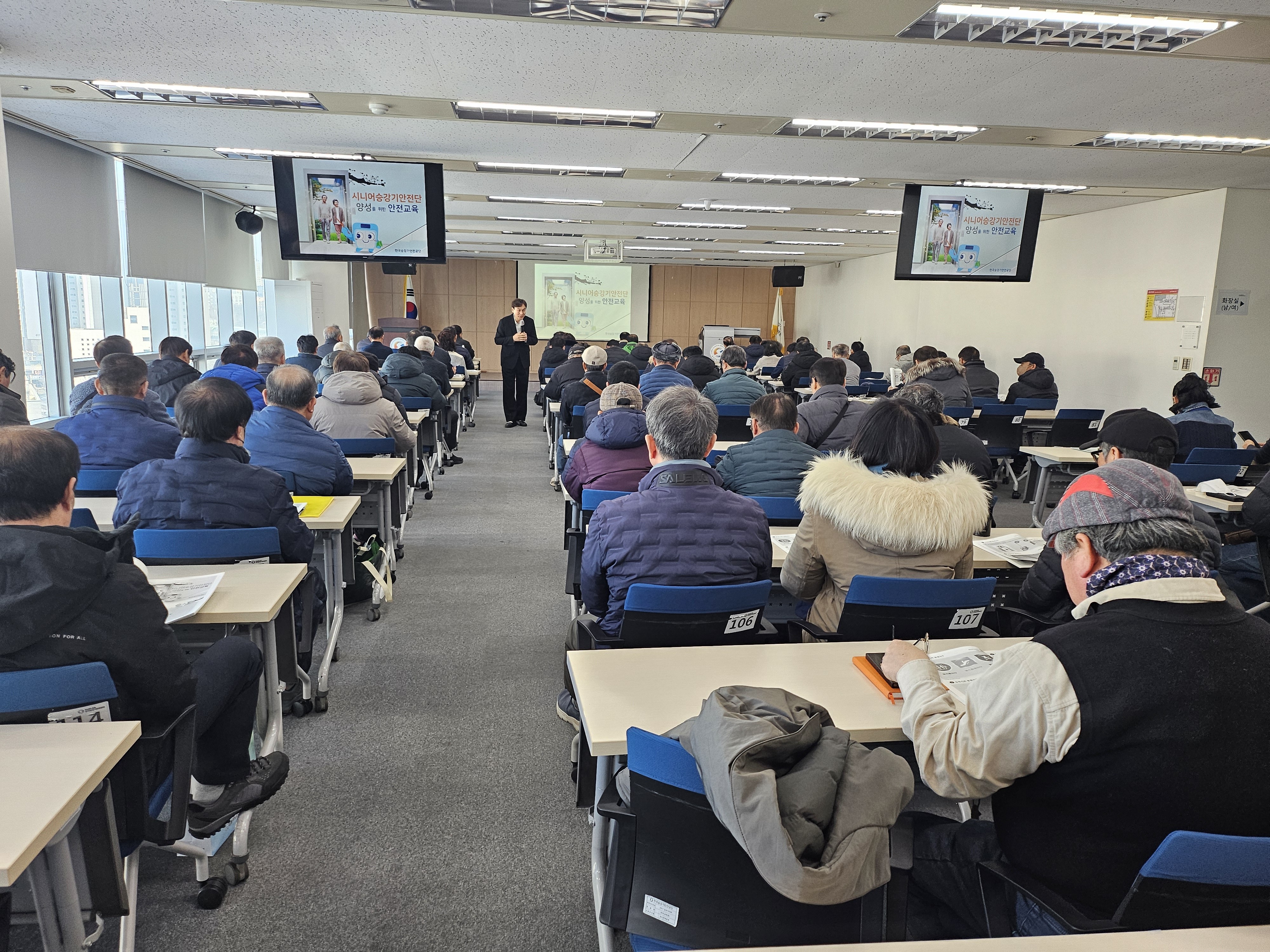 지난 2월 2일 시니어승강기안전단사업 참여자를 대상으로 승강기 안전 이용 안내, 안전 점검 방법(맞춤 체크리스트 활용) 등 한국승강기 안전공단의 ‘시니어승강기안전단 양성교육’ 과정을 연계하여 24명 참여자 전원이 교육을 이수하였습니다.