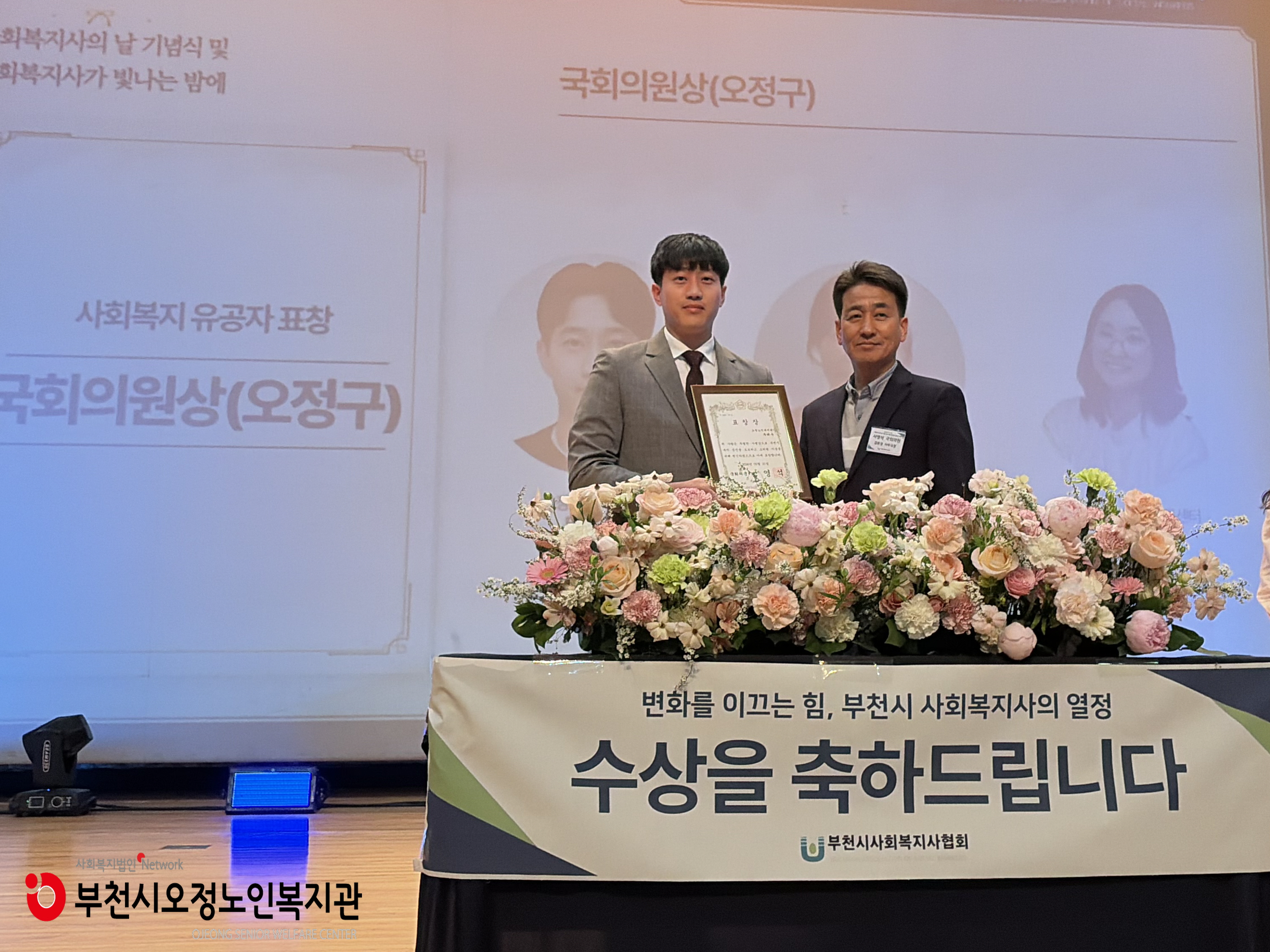 부천시오정노인복지관에서는 제20회 사회복지사의 날을 맞이하여 부천시사회복지사협회가 주관한 사회복지사의 날 기념행사에 참석하였습니다.