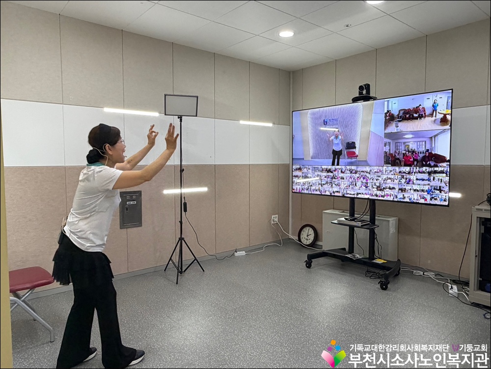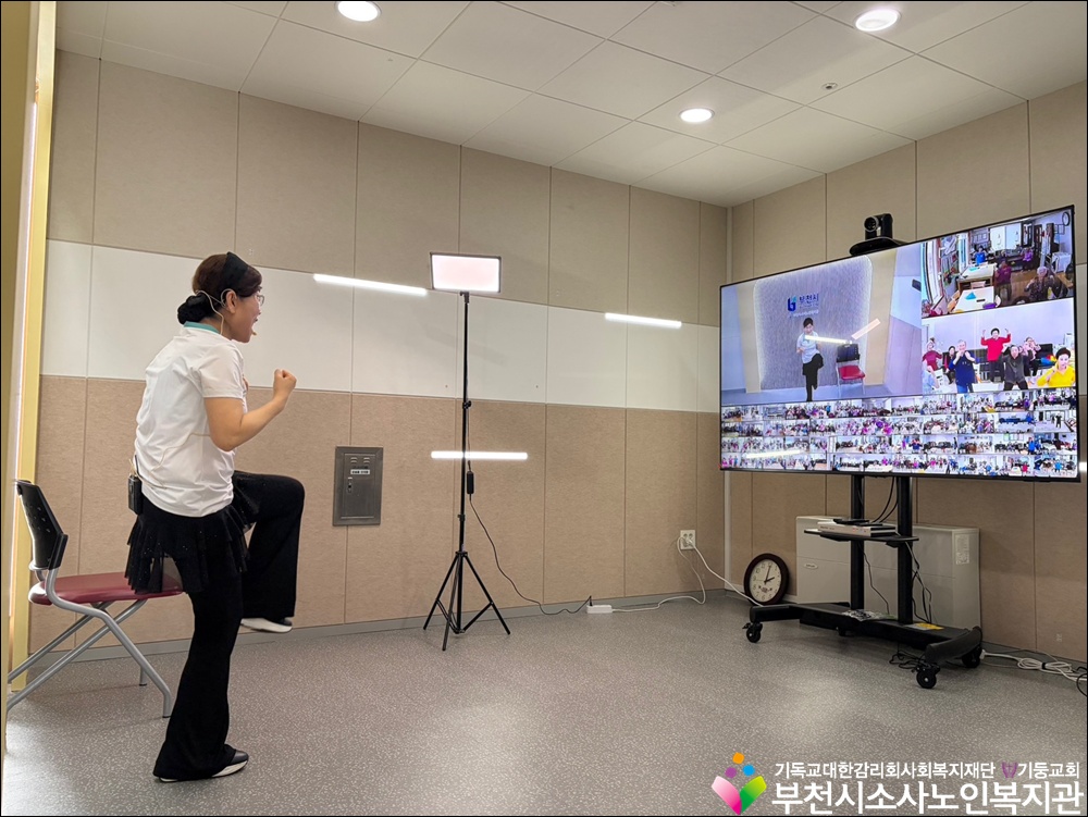 부천시소사노인복지관에서는 4월 1일(수), 스마트경로당 스튜디오에서 소사구 내 경로당 50개소를 대상으로 웃음치료 레크레이션 프로그램을 진행하였습니다.
