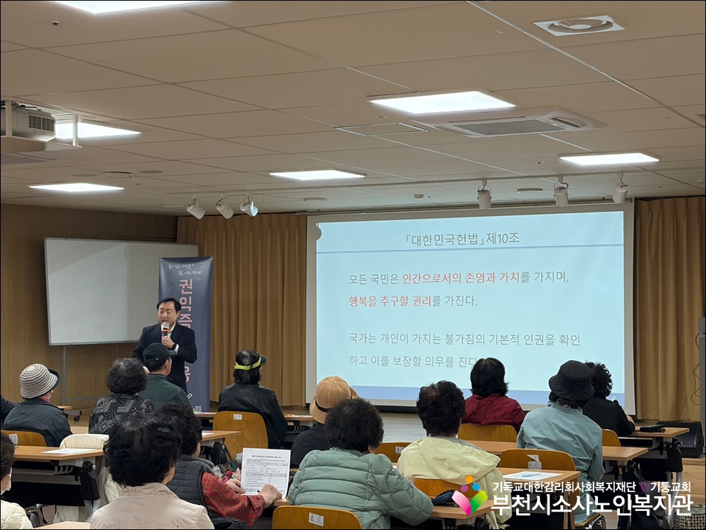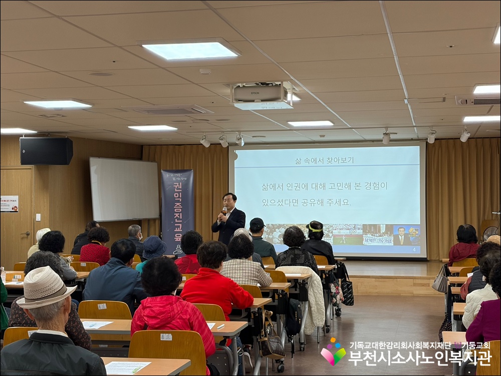 부천시소사노인복지관에서는 어르신들의 권익 보호와 인권 감수성 향상을 위해 노인인권교육을 진행하였습니다.