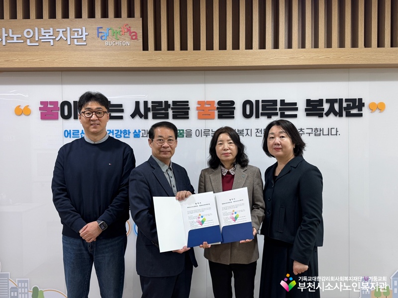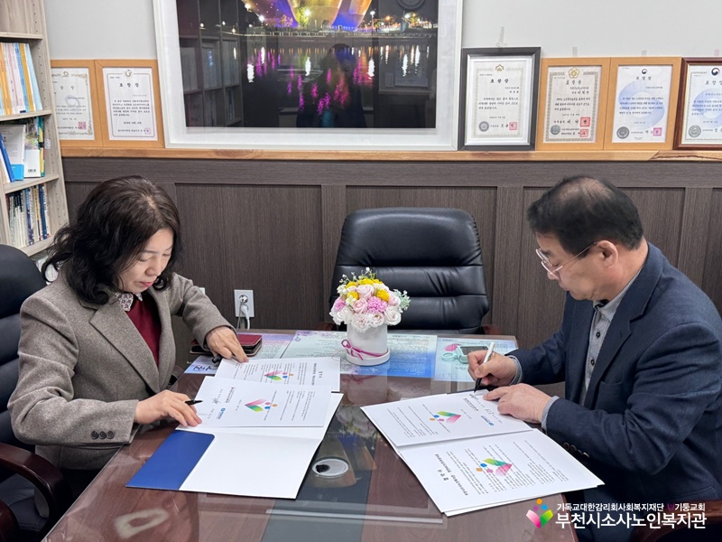 부천시소사노인복지관(관장 이덕수)은 4월 8일(수), 한전MCS(주)부천지점(지점장 김은정)과 지역사회 어르신에게 따뜻한 온정을 나누고, 상호 협력을 통한 지속적인 나눔을 실천하고자 업무협약을 체결하였습니다.
