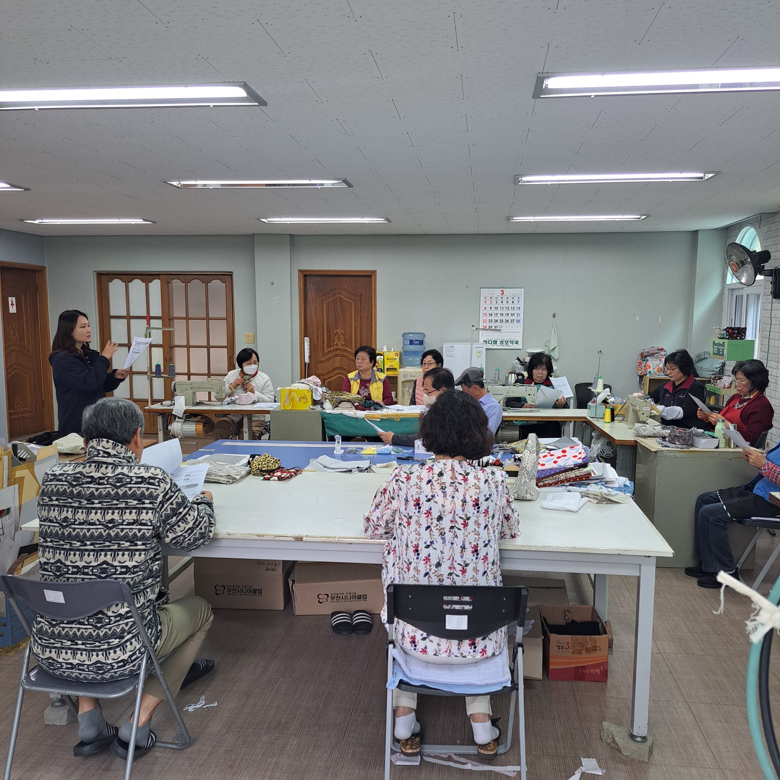봉제및판촉물제작판매사업은 실제 제품을 제작하고 판매하는 만큼 세밀한 안전관리가 필수적이며 앞으로도 정기적인 교육과 점검을 통해 어르신들이 안전한 환경에서 전문선을 발휘하여 건강하게 일할 수 있도록 지원하겠습니다.