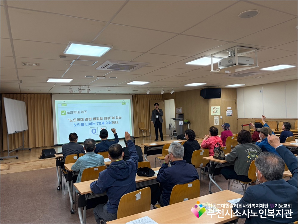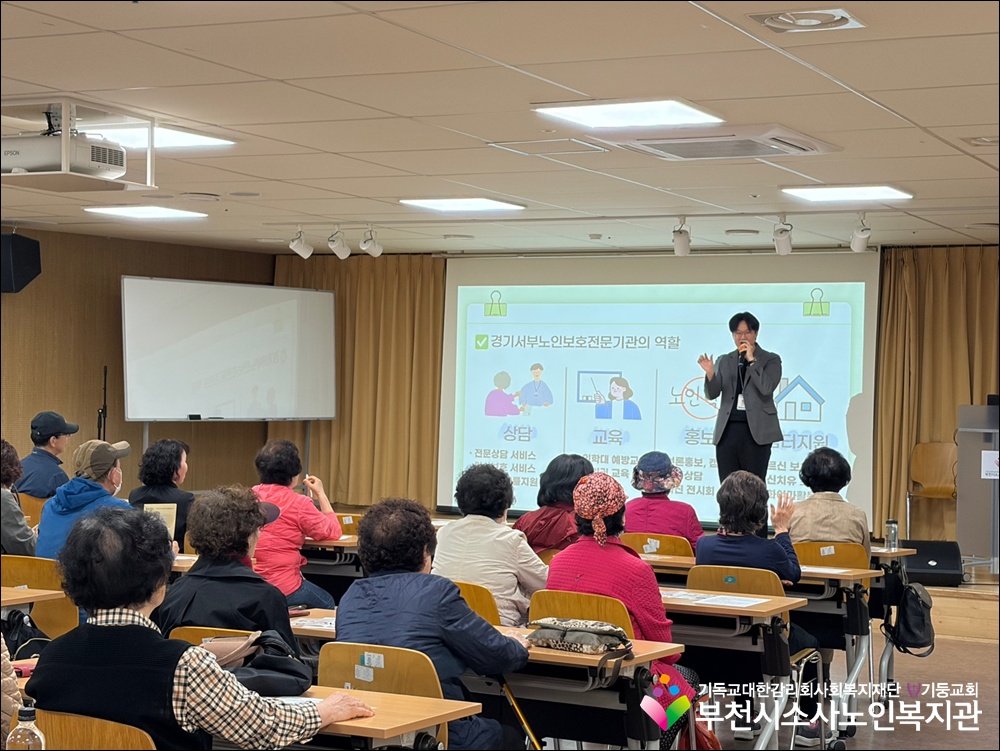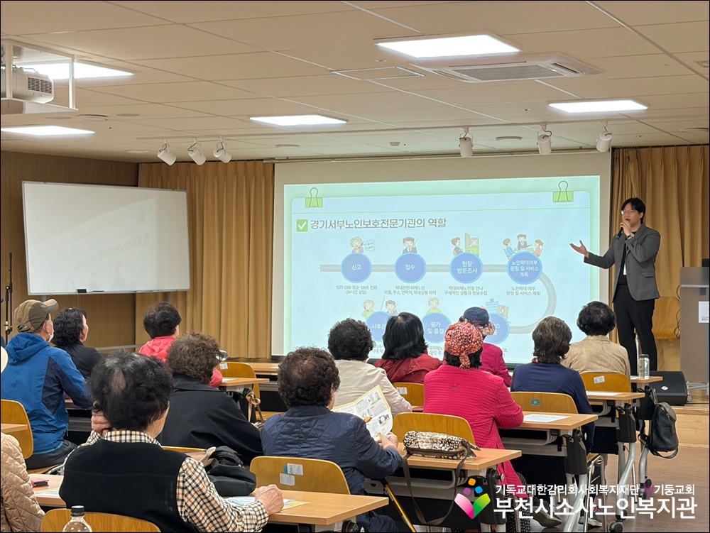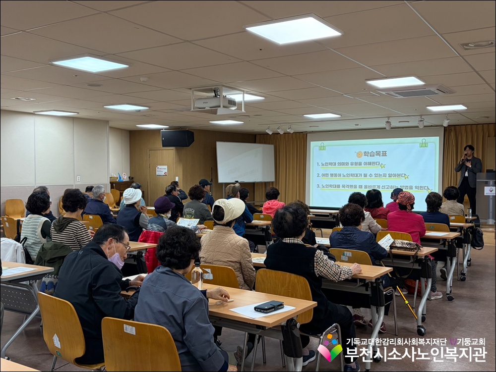 부천시소사노인복지관에서는 어르신들의 권익 보호와 안전한 이용 환경 조성을 위해 노인학대예방교육을 진행하였습니다.