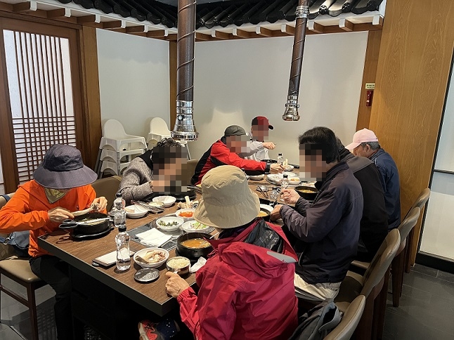 4월 생신을 맞이한 어르신 8명을 모시고 중동에 위치한 '천지연'으로 갈비탕을 대접해드렸습니다.